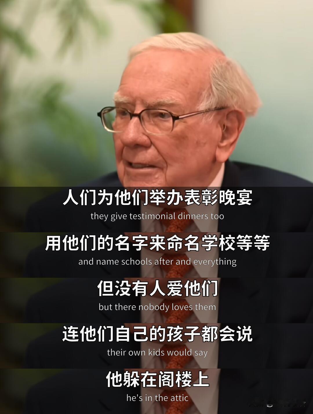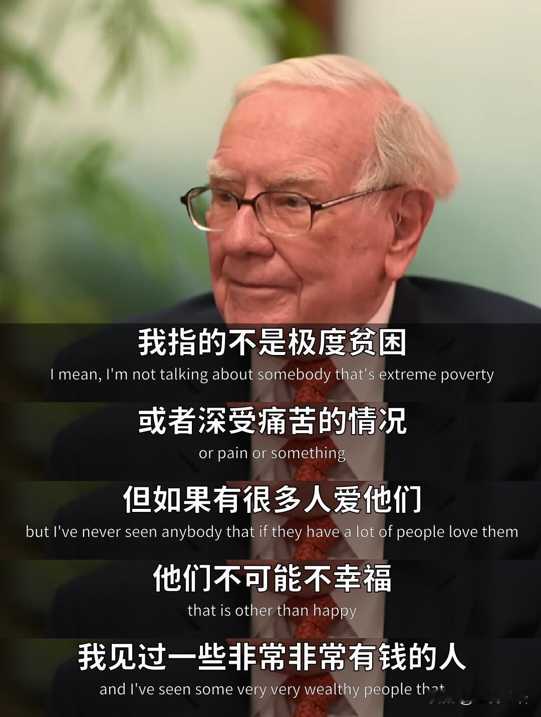 巴菲特这话,戳中多少人的心! 巴菲特谈成功,瞬间被点醒! 他说,老了还有人爱,就是成功。 这话听着简单,却道尽真谛。 多少人追名逐利,赚得盆满钵满。 办表彰宴,学校冠名,看着风光无限。 可到老了, 身边连个真心爱他的人都没有。 这样的人生,算哪门子成功? 晚年的幸福,跟钱真没关系。 不用大富大贵,不用万众瞩目。 只要身边有爱的人, 真心惦记你、陪伴你。 踏实又温暖,这就够了。 原来真正的成功,如此朴素。 不是拥有多少财富, 而是收获多少真心。 好好爱人,也好好被爱, 就是人生赢家! 巴菲特