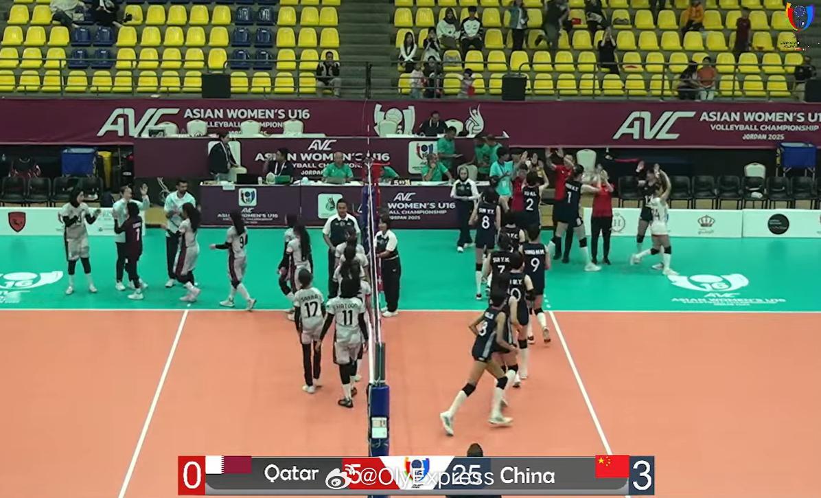 【U16女排亚锦赛中国仅丢13分3-0屠戮卡塔尔 两连胜暂列小组榜首】国际排坛战报速递 11月2日约旦安曼,U16女排亚锦赛小组赛第二轮,中国仅用时42分钟就以3-0(25-2/25-6/25-5)横扫卡塔尔,取得两连胜暂列小组首位,三局仅丢13分!北京时间3日20:30,中国队将迎战小组赛最后一个对手哈萨克斯坦。