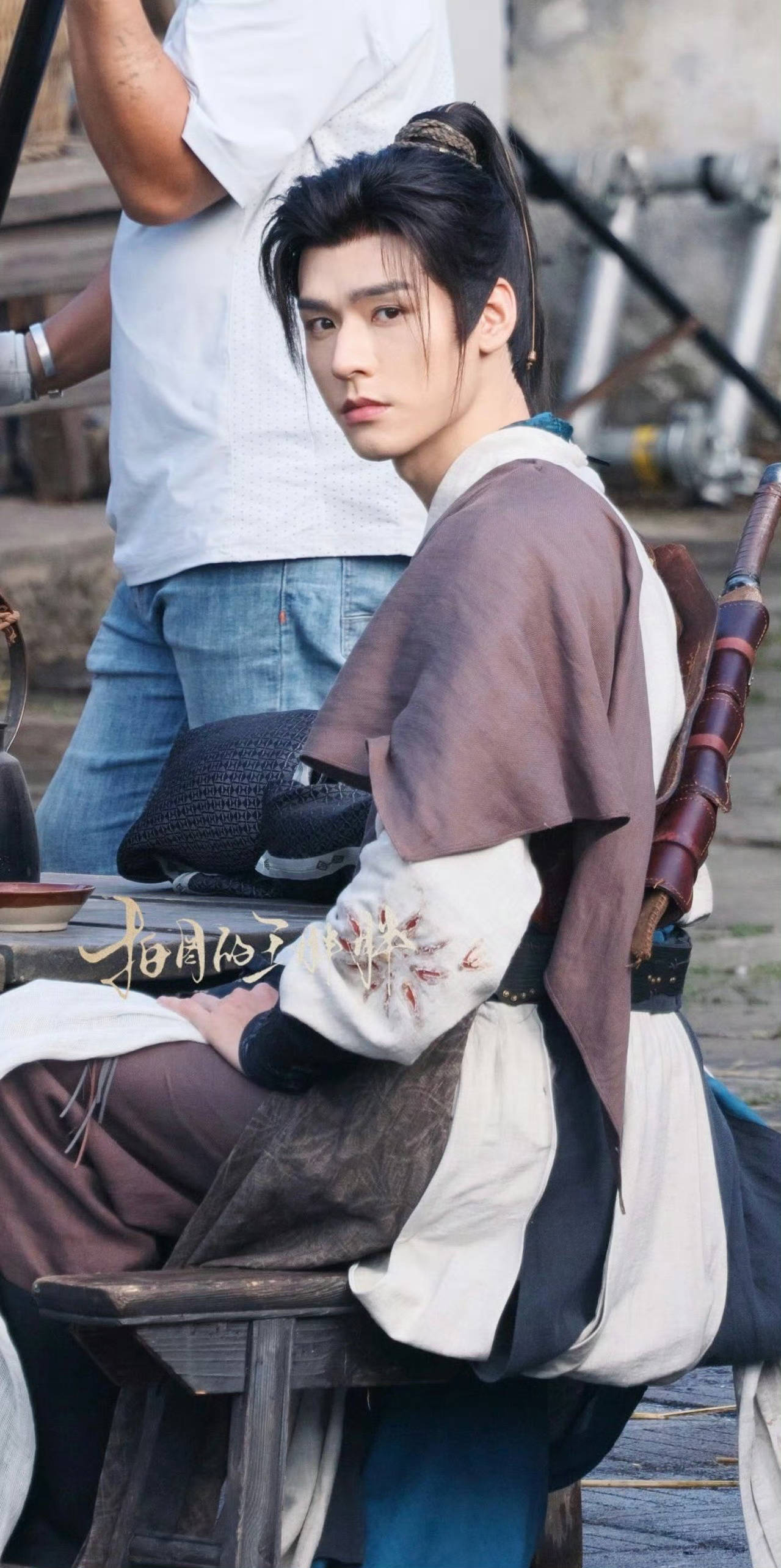 龚俊白衣公卿的路透,妆比暗河传淡很多