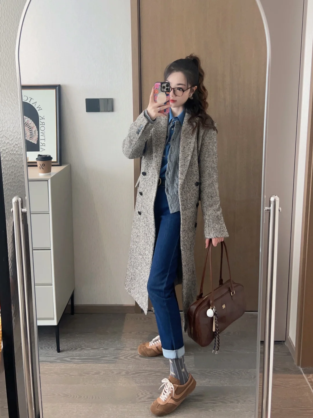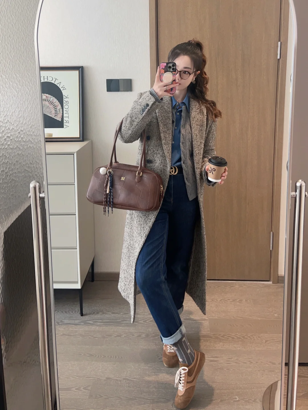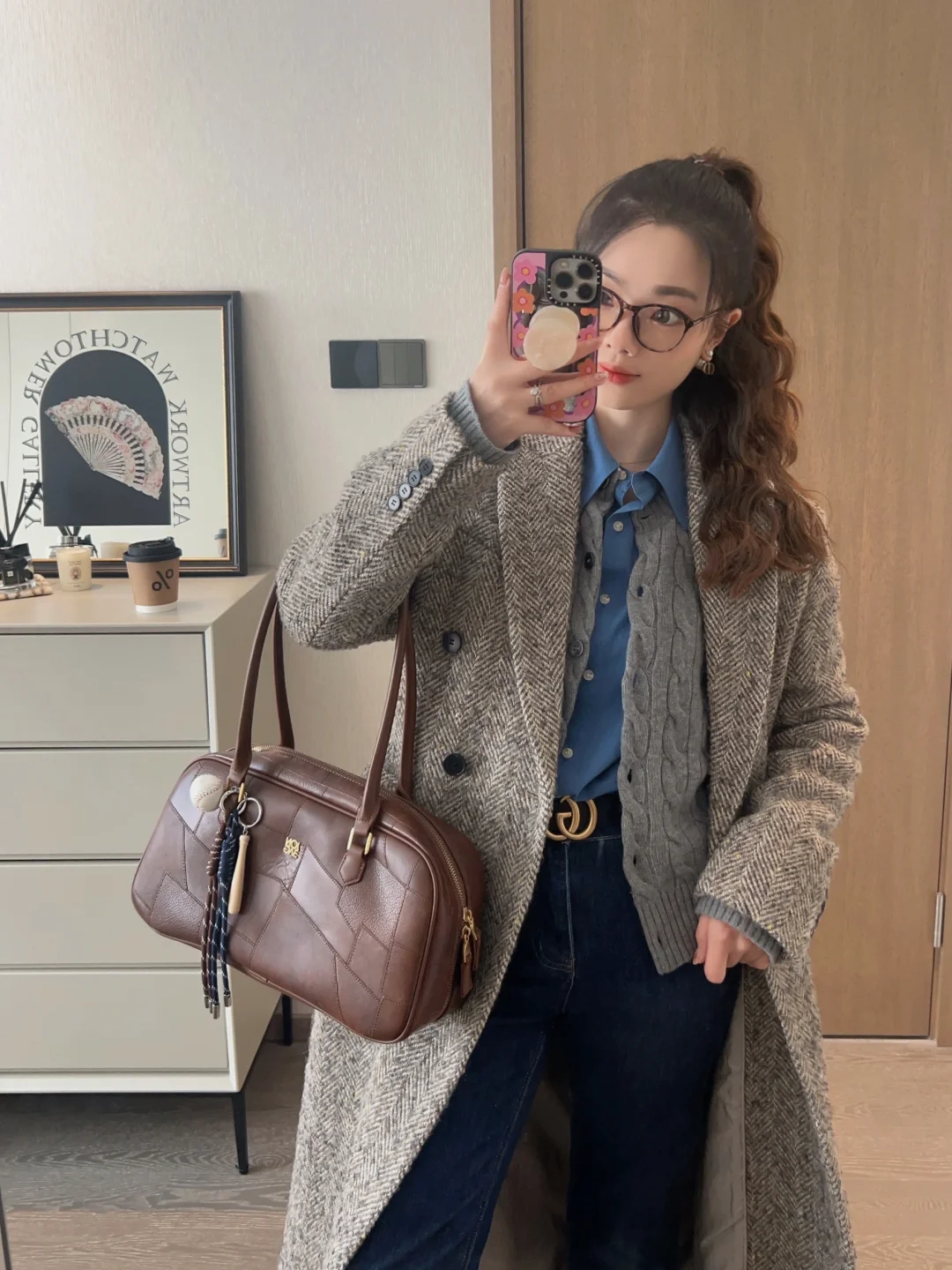 复古保暖又美丽!打工人直呼哇塞的人字纹大衣它来啦!🍁棕灰色简直不要太高级了!叫我购物小天才!