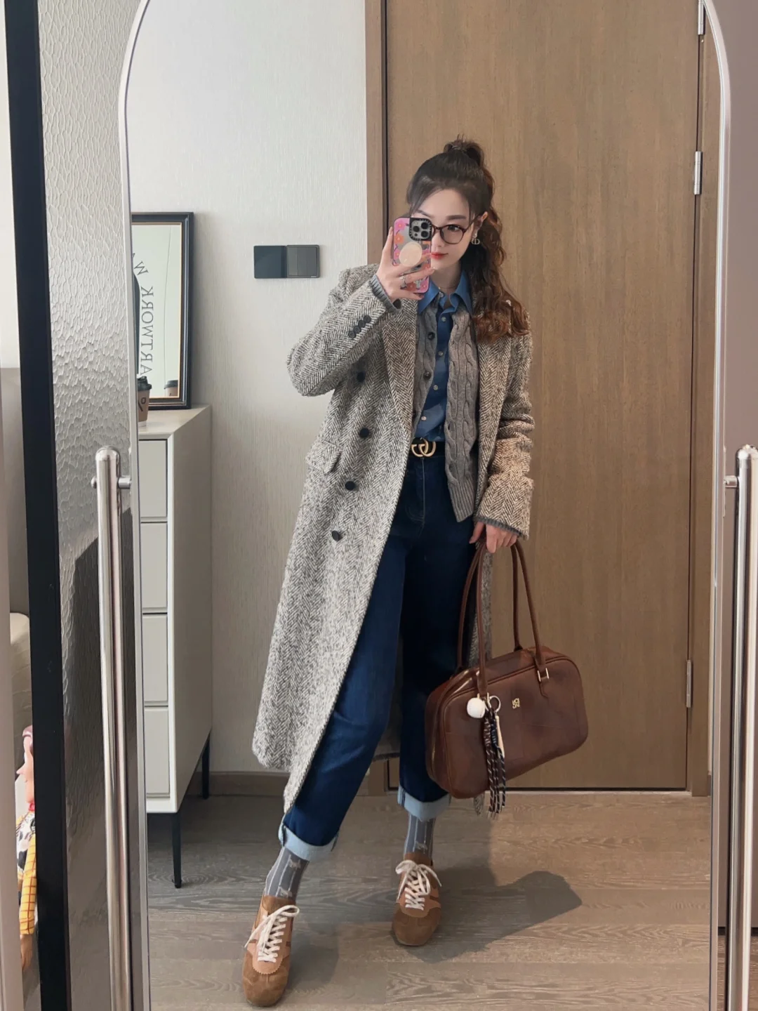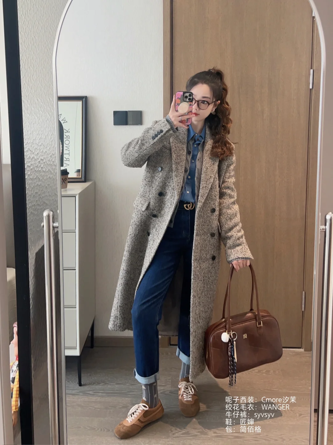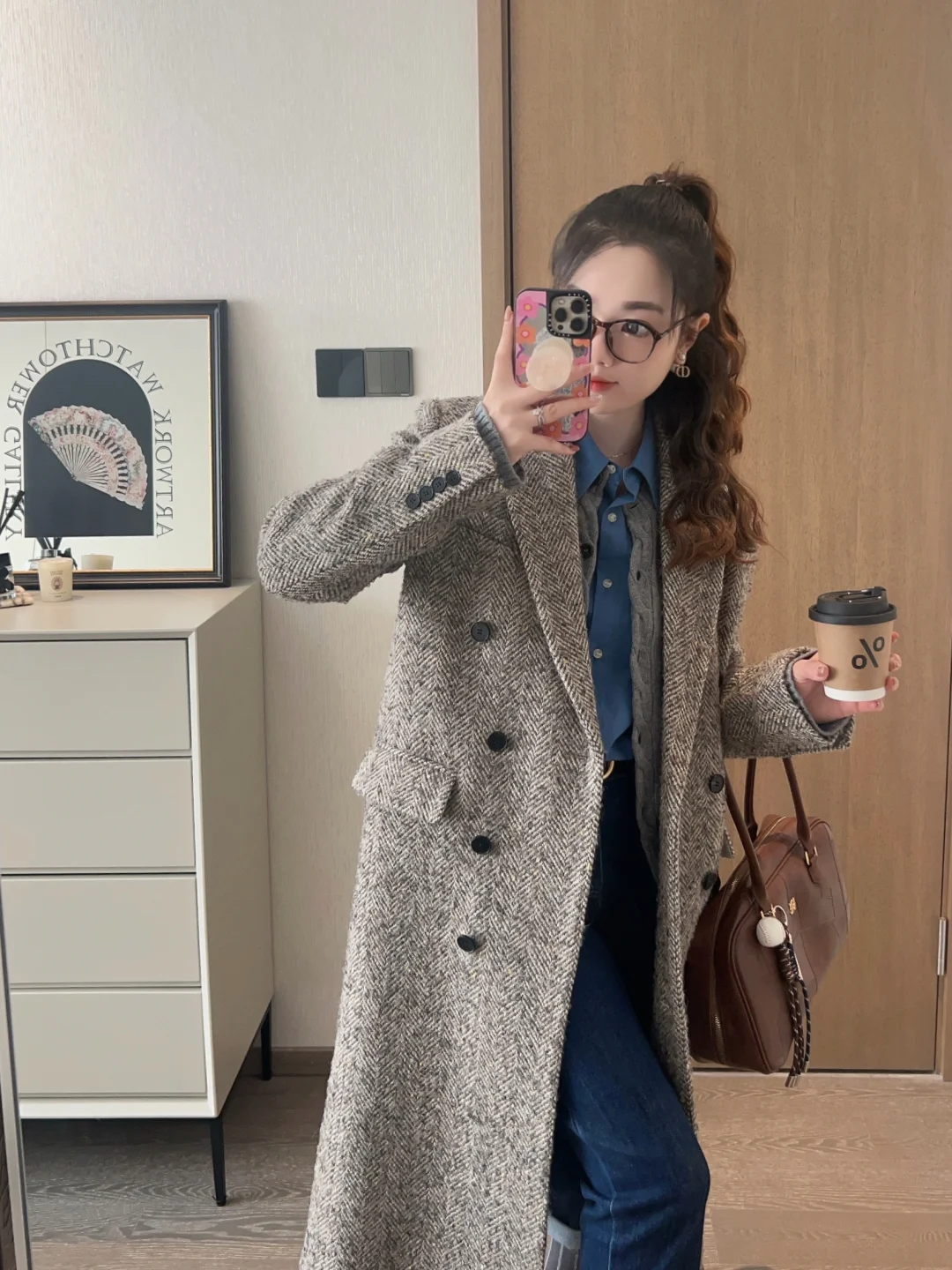 复古保暖又美丽!打工人直呼哇塞的人字纹大衣它来啦!🍁棕灰色简直不要太高级了!叫我购物小天才!