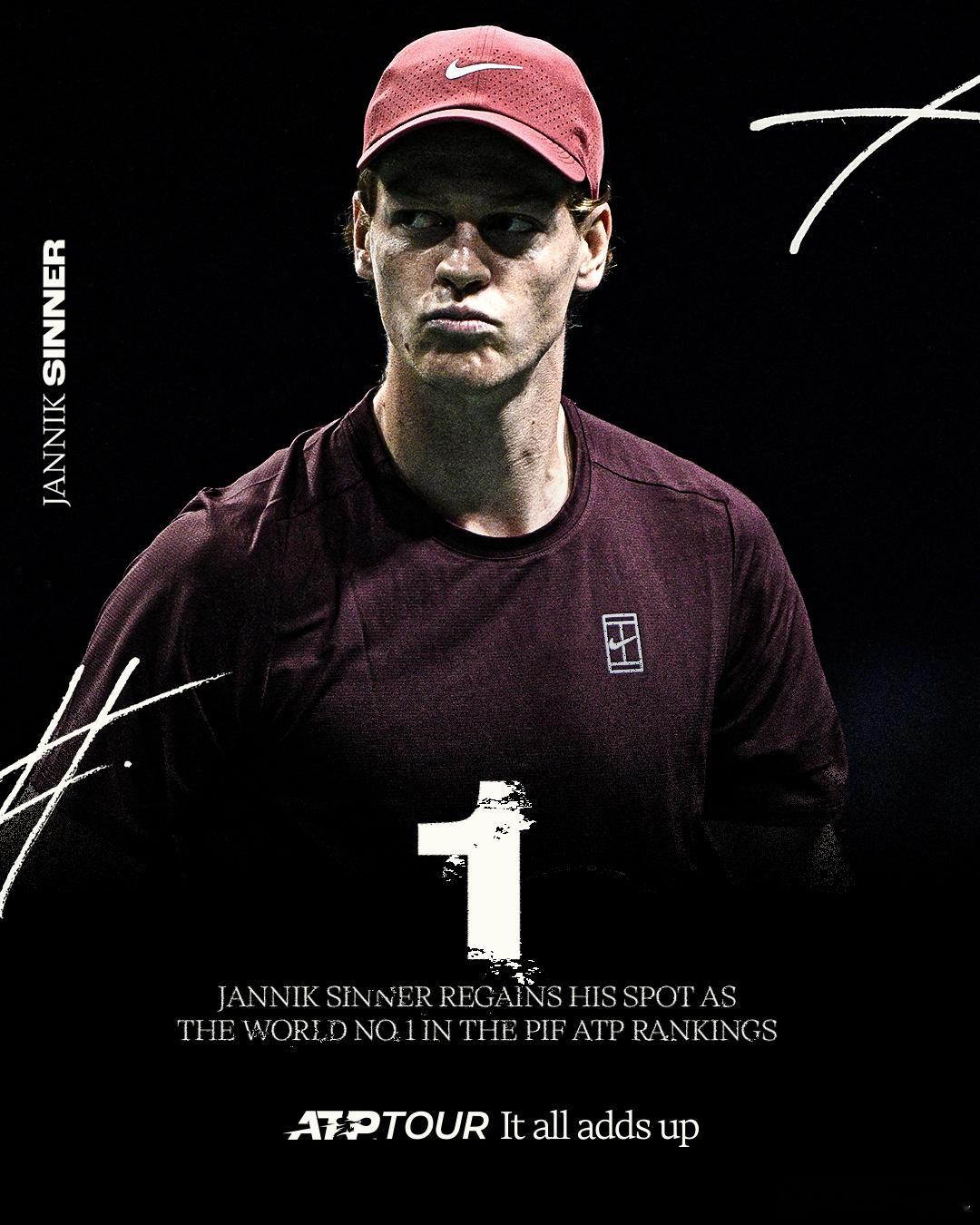 恭喜扬尼克·辛纳将在11月3日的PIF ATP排名中重返NO.1👑