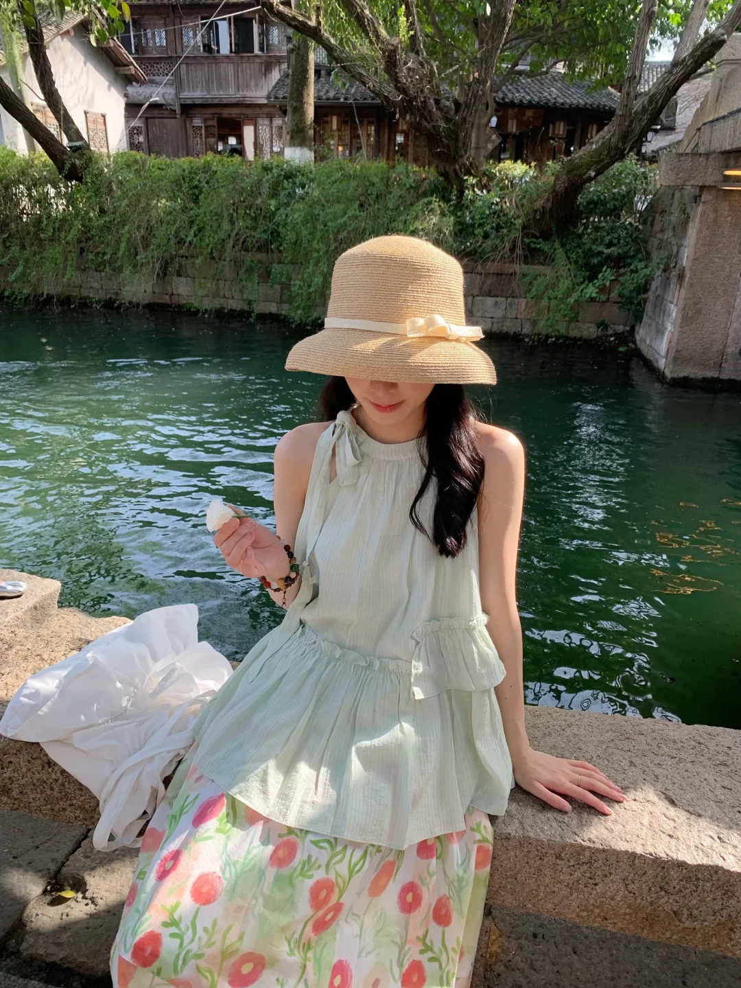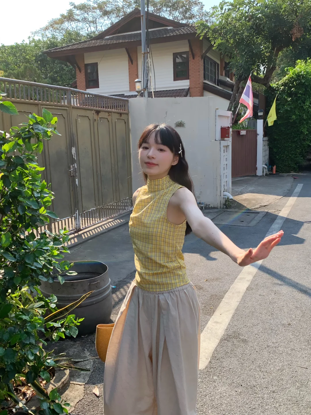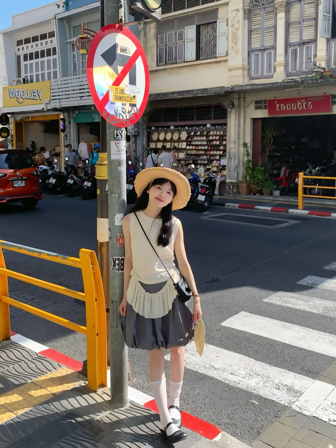 夏日清新穿搭,条纹背心+高腰短裤,轻松自在,元气满满!🌞👗💃