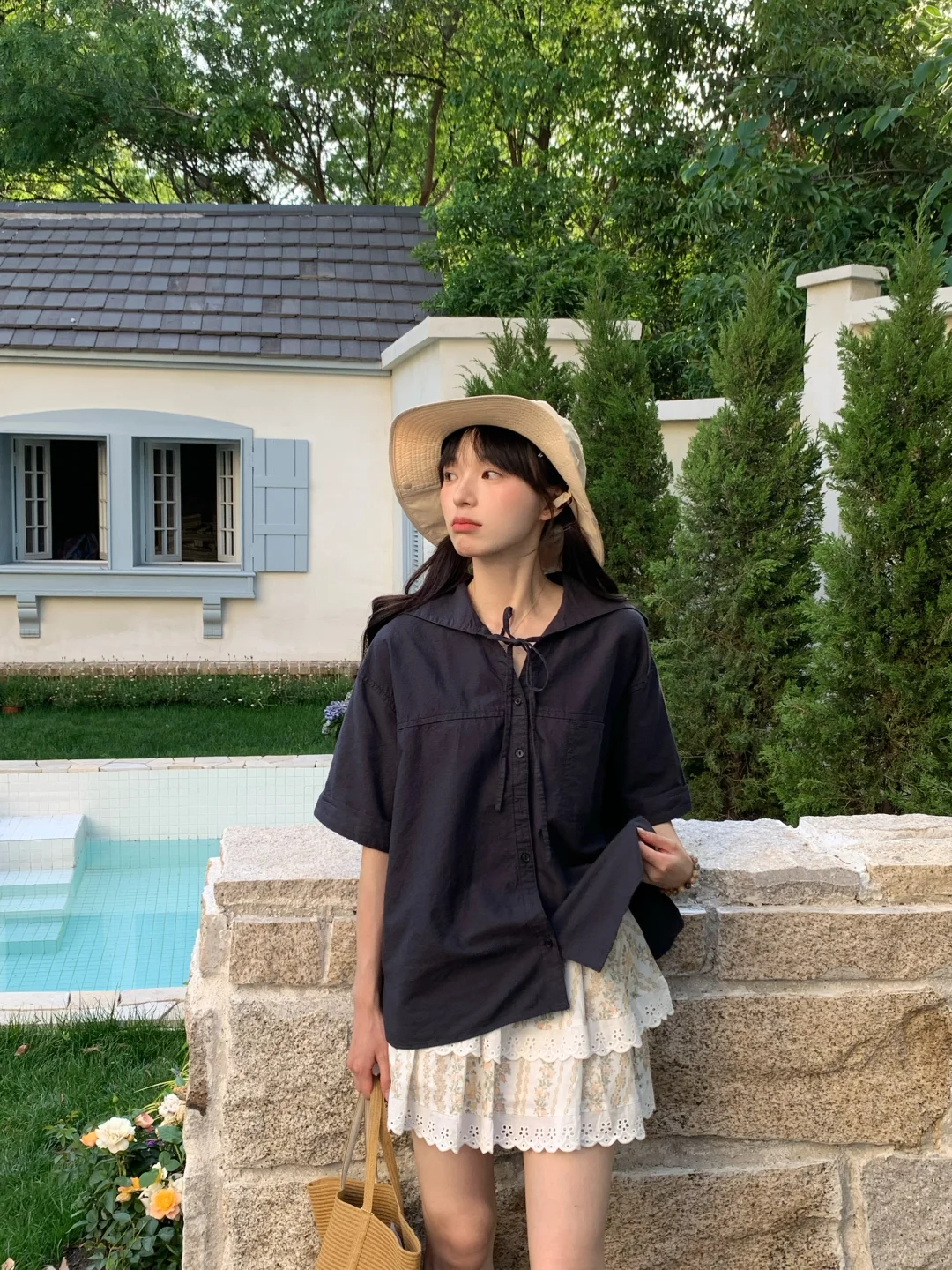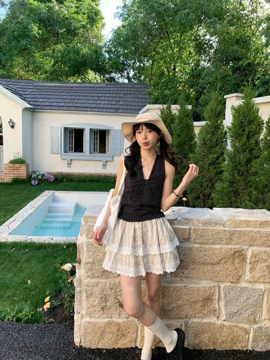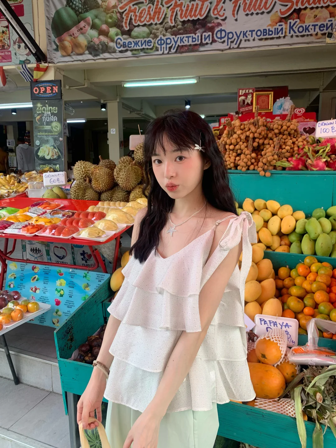 夏日清新穿搭,条纹背心+高腰短裤,轻松自在,元气满满!🌞👗💃