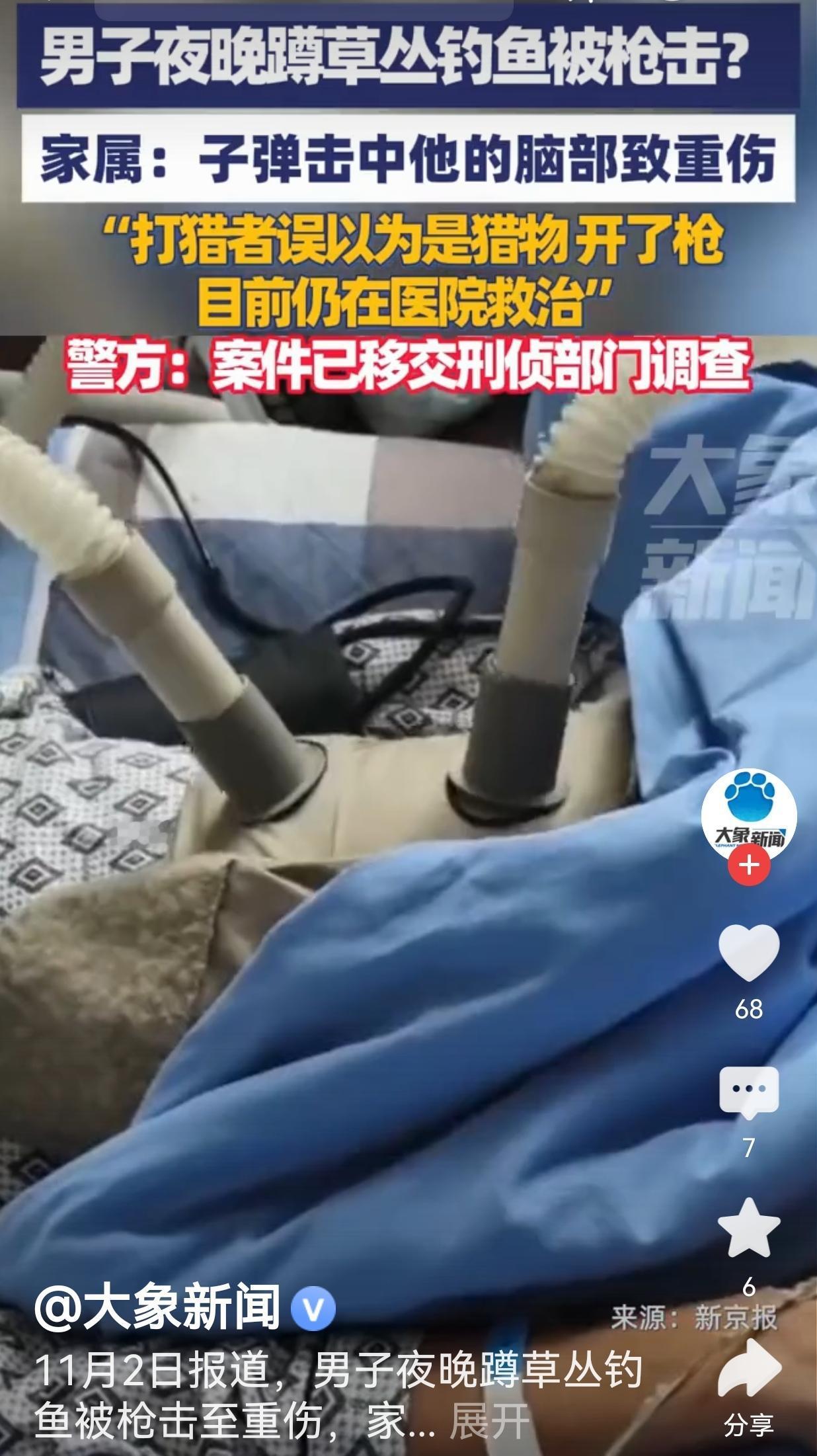 太悲催了!湖南南县一男子夜晚在河边钓鱼,当时男子所在的位置是草丛里,位置极为隐蔽,再加上没有灯光,四名打猎者看到草丛附近有动静,就想当然的以为是猎物。 因此,其中的一名打猎者直接开枪,男子也是挺倒霉的,就是这一枪正好不偏不倚地击中了男子的脑部。男子应声而倒,等打猎者听到响声,闻讯赶来,这才发现自己闯下大祸了! 事发后,四名捕猎者均被警方控制,为了救治男子,当地村委会多次组织涉案人员的家属积极赔偿受害者的医疗费用。 目前,该案件已经移交刑侦部门开展调查,我们静等真相的到来。 网友看到后评论说,我国在上世纪八九十年代就开始禁枪了,这哪来的猎枪?为什么可以随便狩猎?真是匪夷所思啊! 还有的网友说,钓鱼佬们看看,这就是鲜活的例子,你们需要购买的装备得加上防弹头盔和防弹衣! 前一段时间,一位19岁的亳州小伙下夜班被打猎者击中头部,这才过去了多长时间,又发生类似的案件。 我就不明白了,这些人怎么那么容易搞到猎枪呢?他们的猎枪怎么来的呢?我们国家对枪支管理这么严格,禁止个人制造和携带枪支。为什么一些人总喜欢以身试法呢? 通过这件事情也告诉我们一个道理,那就是出门在外一定要有安全意识。尤其是夜晚出门,最好带个手电筒。让别人知道你不是猎物,这样才能避免悲剧的发生。 最后,希望男子能顺利挺过去,早日醒来。加油!