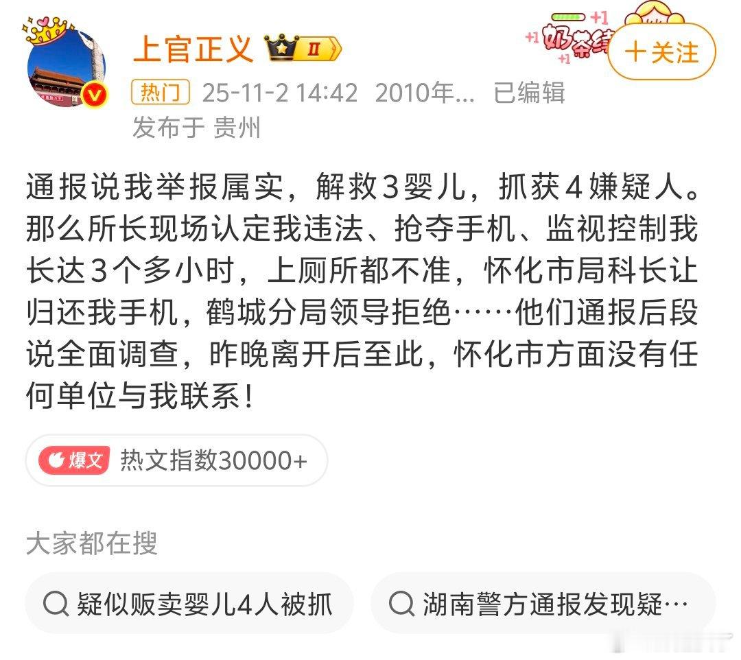 上官正义回应3名婴儿获救智搜显示上官正义的质问直指关键:“我是举报者,不是犯罪嫌疑人!”——公权力的自我约束与对民间正义的尊重,是根除拐卖犯罪的重要基石。