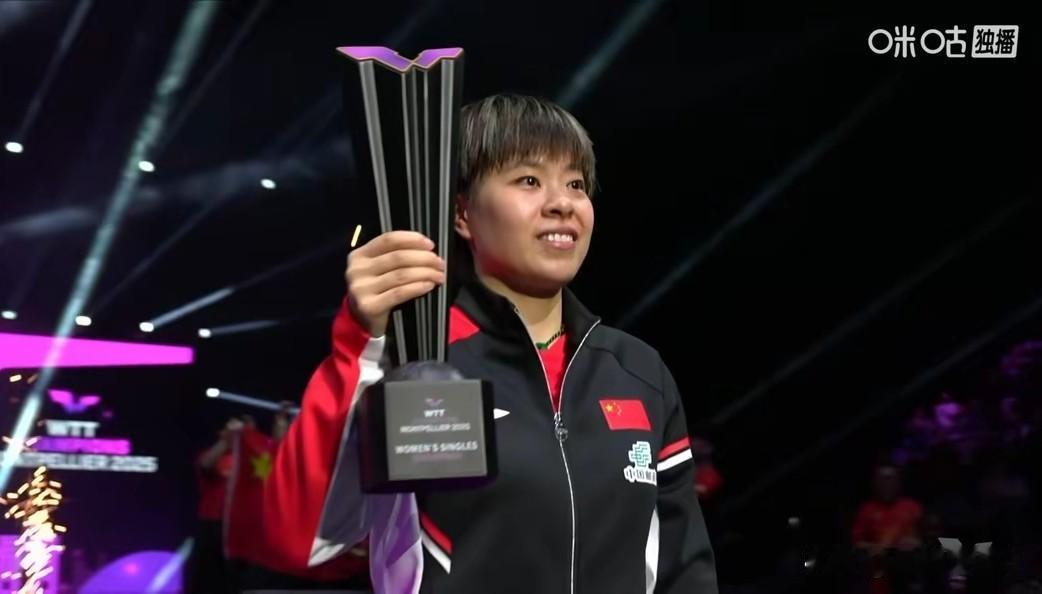 王艺迪好样的!在WTT法国蒙彼利埃冠军赛女单决赛中,她以4-3逆转击败33岁的德国怪球手莎宾·温特,勇夺冠军,捍卫了国乒荣誉。本次比赛,中国队未派出全部核心主力参赛,三位男单小将在前两轮就全军覆没,早早宣告无缘男单冠军,陈幸同和蒯曼两位女将也在前两轮输球出局,与王艺迪一起打进八强的陈熠在1/4决赛2-4不敌韩国一姐申裕斌,王艺迪4-3力克张本美和,成中国队四强独苗。半决赛,她4-2击败本次比赛状态奇佳的从中国归化到韩国的23岁的朱芊曦,决赛面对连胜韩莹、斯佐科斯、杜凯琹和申裕斌的温特,王艺迪在0-2、2-3落后的情况下追平比分,并两次成功挽救赛点,以4-3绝地反击夺得冠军。