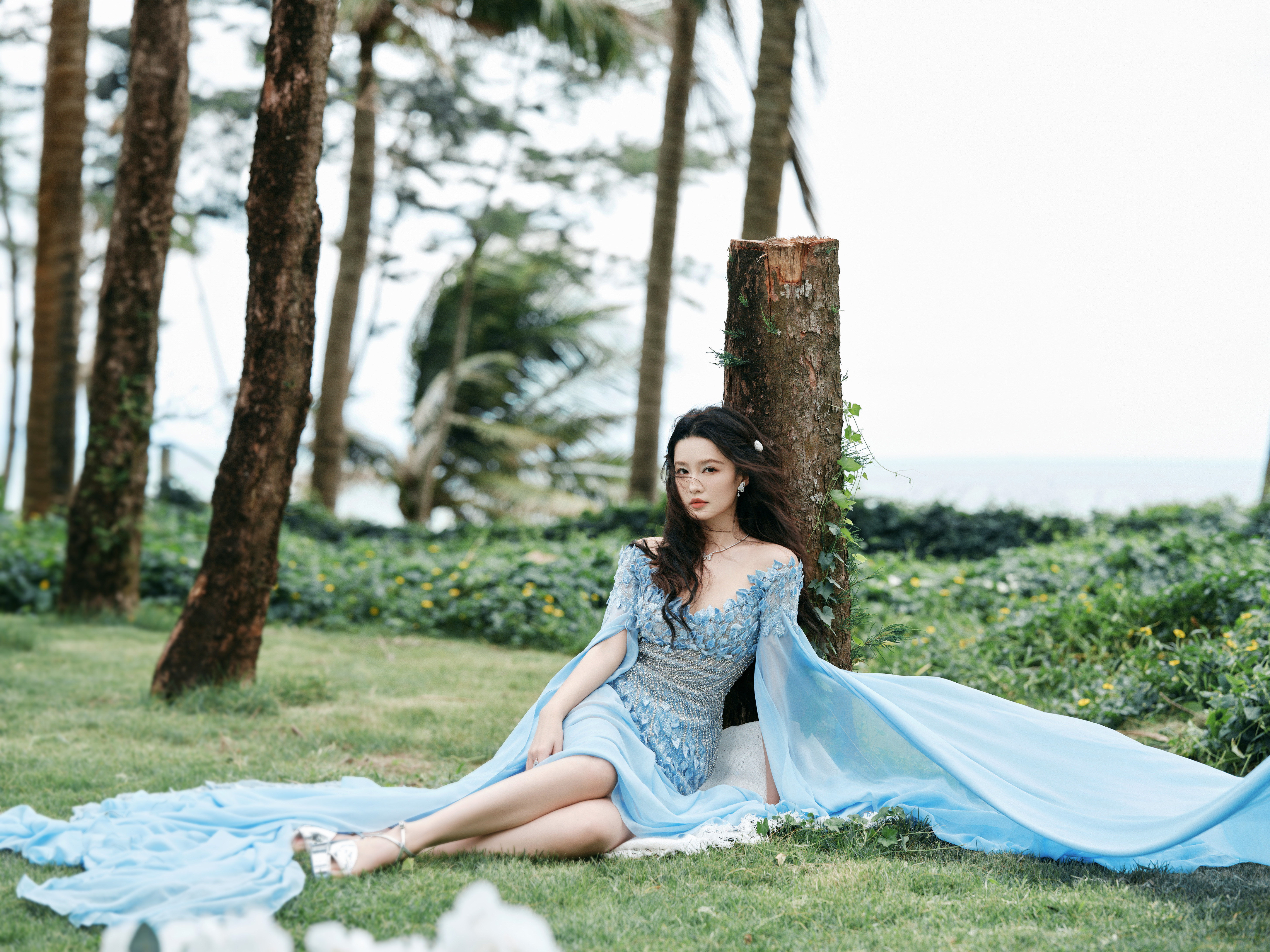 李沁真聪明,巧妙地在衣服胸口做了小处理,既大方又得体。