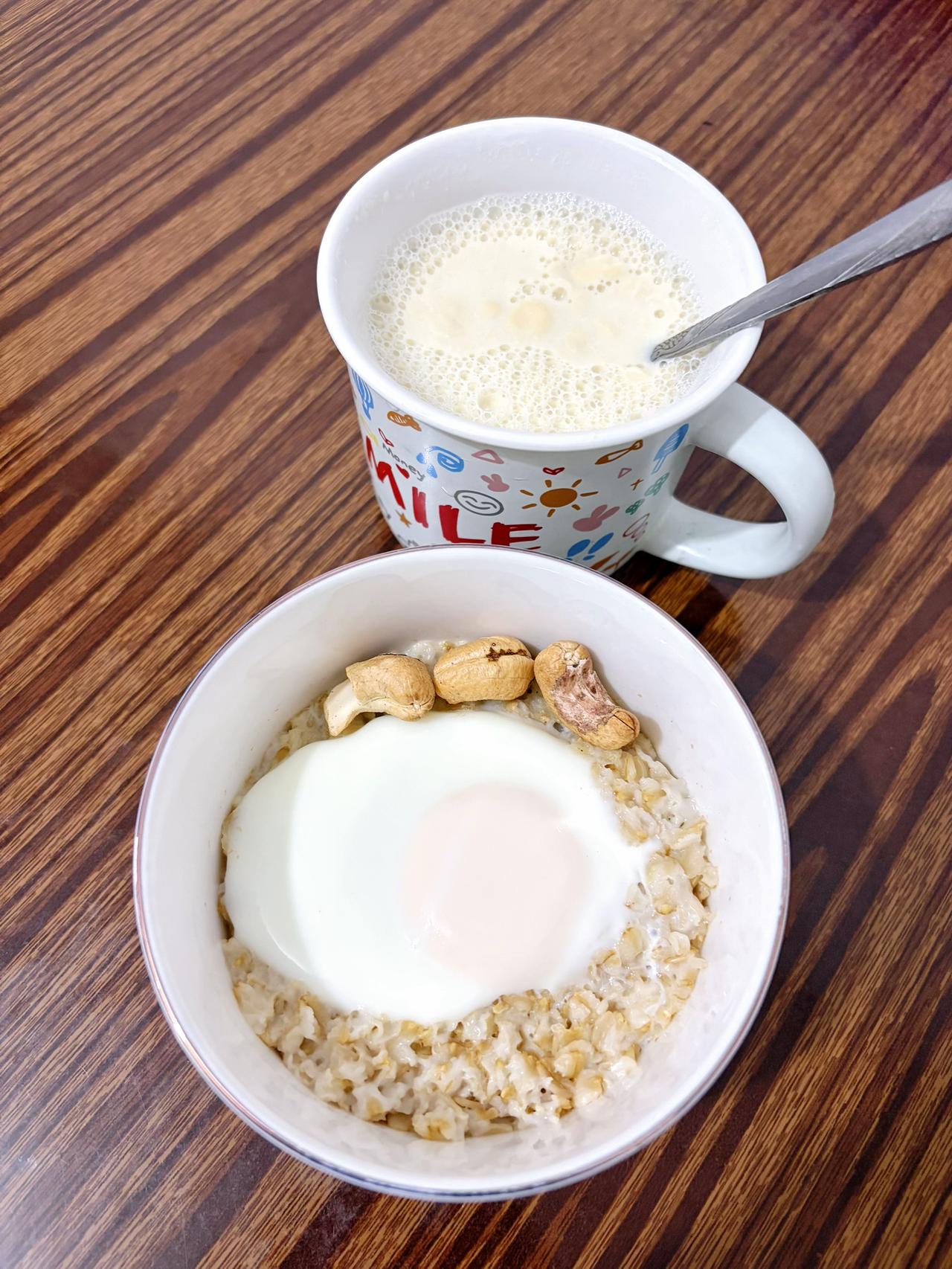 泪水打湿我的减脂餐,发誓瘦到105斤,加油 今日减脂早餐:鸡蛋燕麦+豆浆+腰果