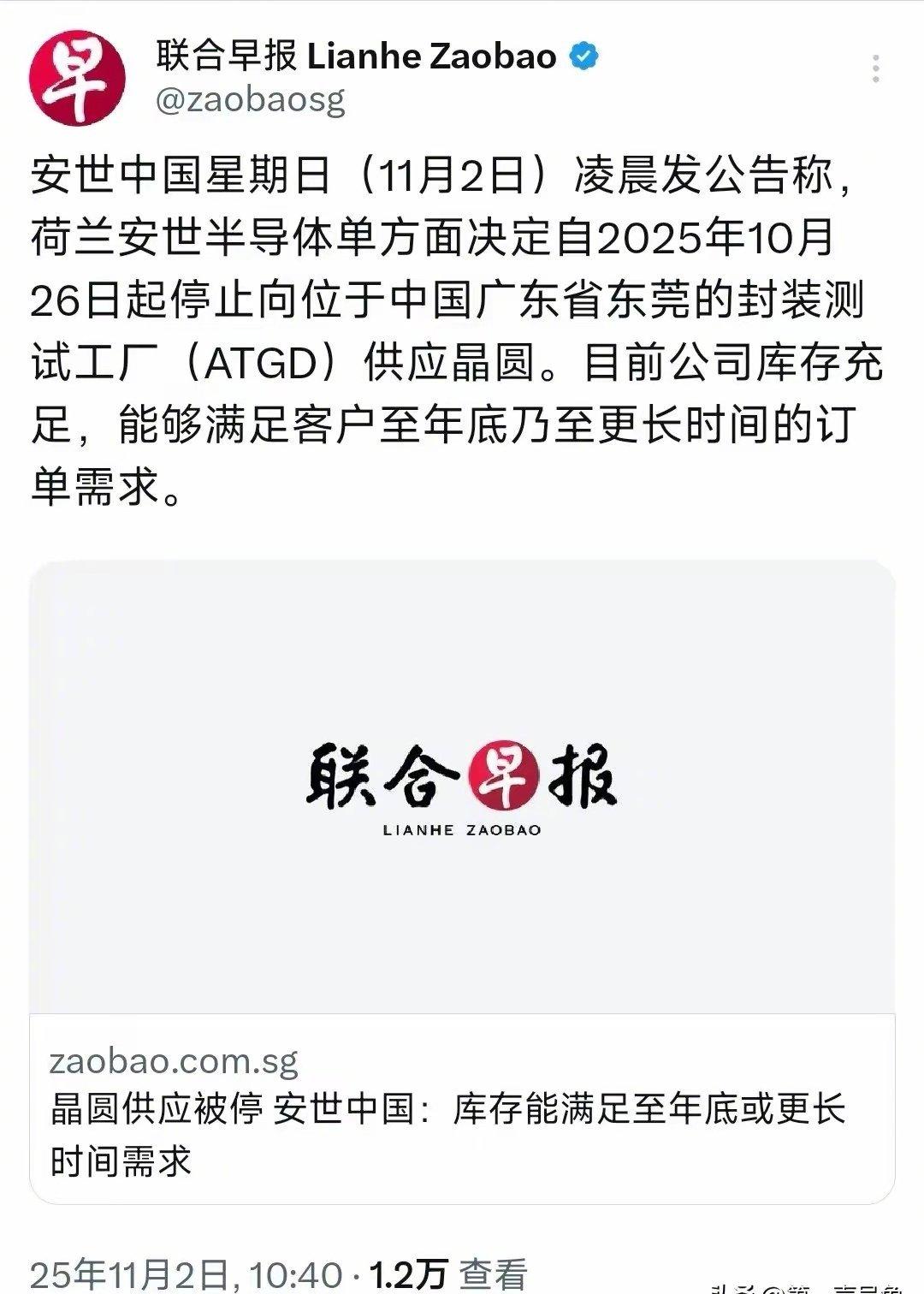 国际金融专家Kathleen Tyson(北京时间11月2日)发文写道:“安世中国将恢复每月60亿个组件的全球供应,所有芯片均来自中国。与安世中国公司签订合同,否则停止工业生产。只接受人民币付款。再见,欧洲。你又输了。” 当年安世半导体濒临倒闭,中资企业将其收购后依靠中国市场,迅速扭亏为盈恢复生机。现在把企业做大做强了,荷兰突然来抢劫了。一个全资中国公司,自己在欧洲的晶圆厂不给自己的封测厂供货,怎么看都是中企吃亏。这个结果太让人不舒服了。