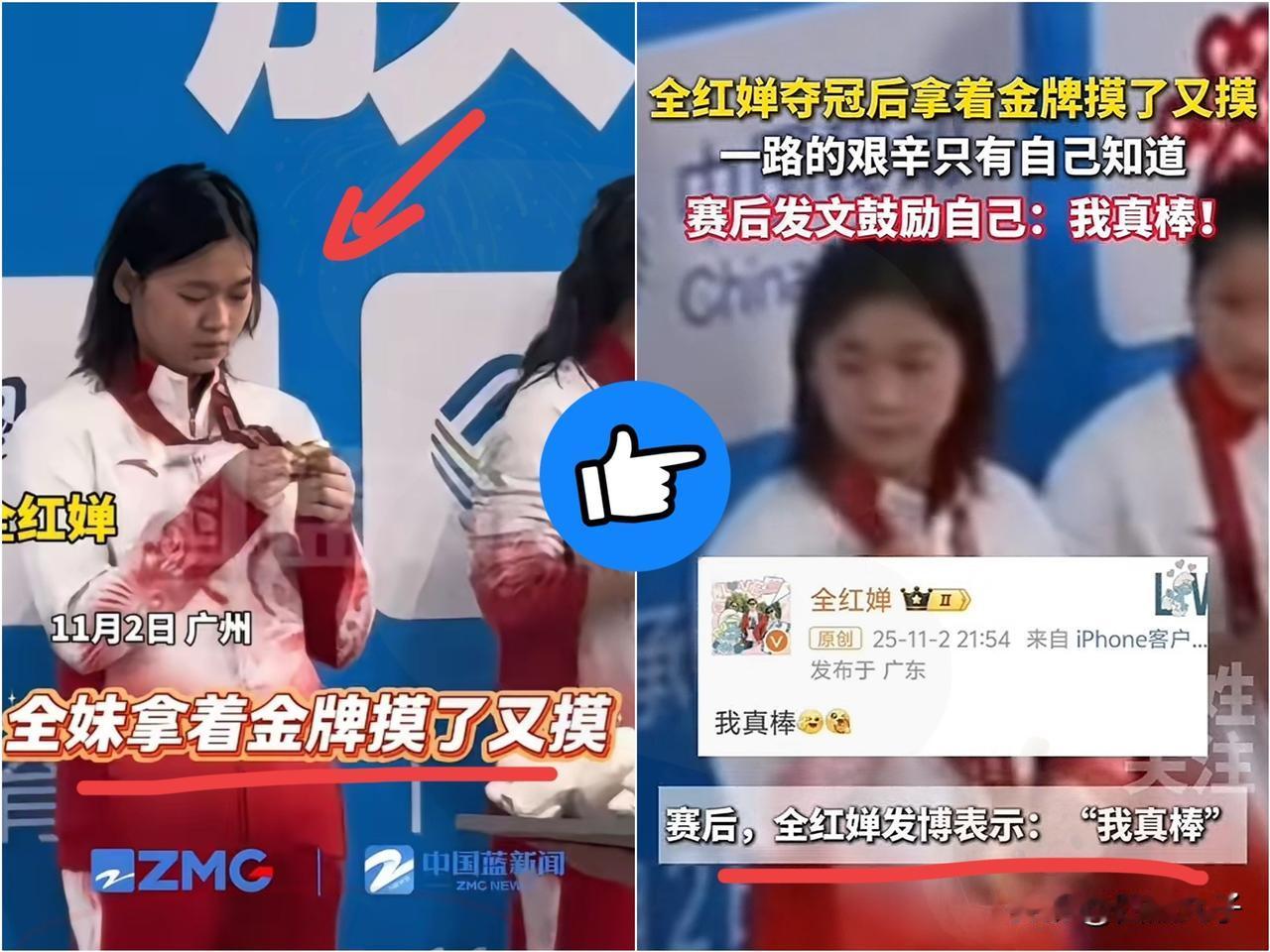 给人看哭了!! 全红婵拿到金牌后看了很久,小心翼翼的抚摸这块金牌,只有她自己知道,这一块金牌是多么的来之不易。 谁看了全红婵拿金牌后的画面不心疼又热血?她盯着那块金牌看了好久,指尖轻轻摩挲,动作轻得像在呵护稀世珍宝——这是她熬过无数个枯燥日夜的证明,是把质疑声踩在脚下的底气,是等待赛场机会时咽下的所有委屈! 总有人说她“天赋异禀”,却忘了天赋背后是日复一日的跳水训练,是动作失误时摔进水里的疼,是坐冷板凳时害怕被时代抛弃的慌。 明明实力碾压,却要在等待中煎熬,这种滋味,只有真正热爱的人才能懂。但她没放弃,用这块金牌告诉所有人:真正的强者,从不是从不跌倒,而是在低谷里默默蓄力,等机会来了就牢牢抓住! 真心希望她能继续跳水,能继续多参赛,用实力告诉所有人,这个时代的跳水女王就是全红婵。大家说对不?