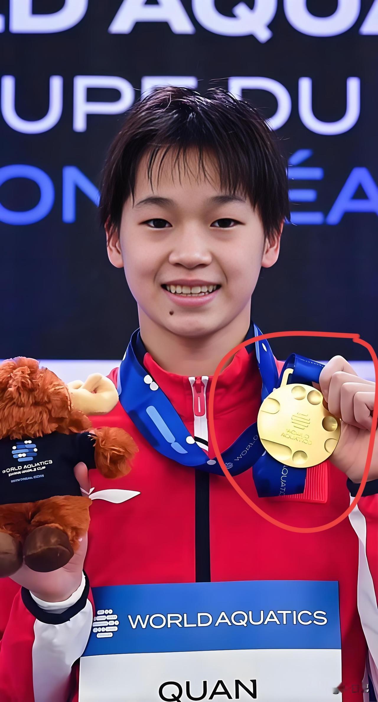 从懵懂得金牌, 到得金牌很开心, 再到金牌摸了又摸。 一路的辛苦只有全红婵自己知道。 作为一个普通家庭出身的王者, 她的成功不仅是天赋和汗水, 还要付出很多我们看不到的。 全红婵你最棒。