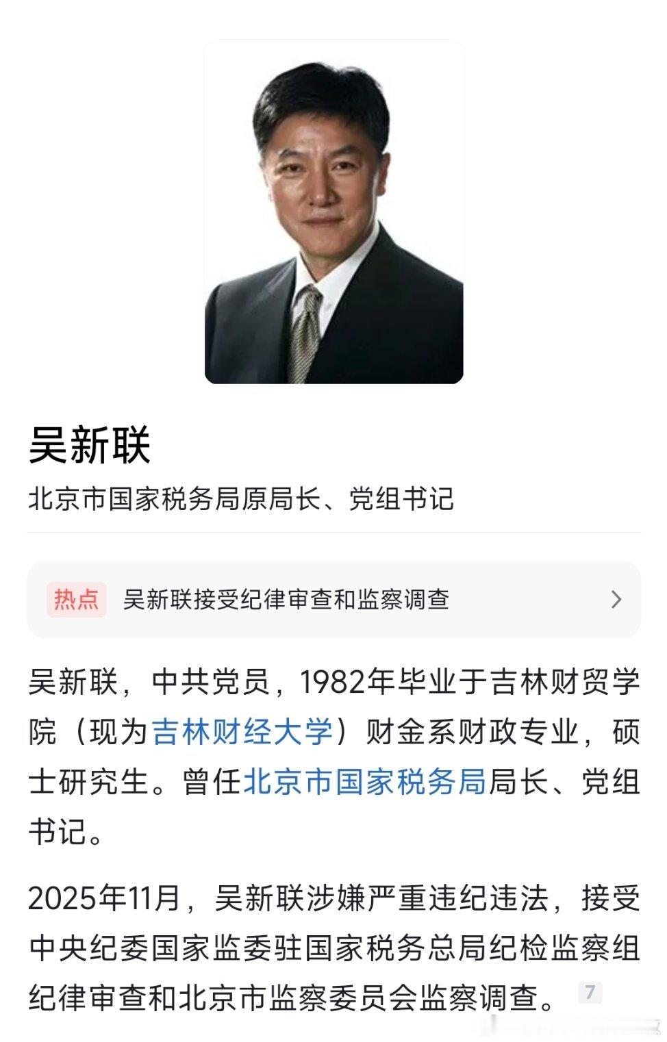 原北京市国家税务局党组书记、局长吴新联被查!热点现场