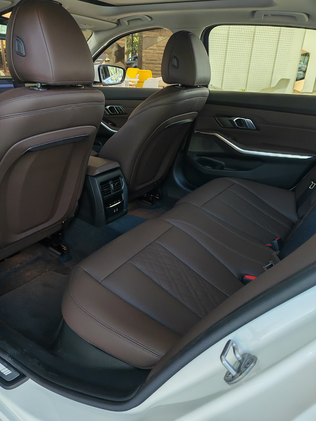 宝马330Li购车试驾体验 作为曾经的豪华品牌b级车运动标杆,都是年轻人绕不过一辆3系,我正好赶在30岁之前拥有了它。 去购车试驾整体还是比较顺利的,外观就很对眼缘,店里当时正好就有炭黑外观红色内饰加原厂座椅加热的现车,带着老婆一起试驾。 具体来说说试乘试驾体验,这代三系减配了腰托,但是我这个身高体重(188 180斤),也能调整到一个比较舒服的坐姿,但是腿两侧空间不是太宽裕。坐进来之后,宝马这一代整体的内饰设计语言还是比较对我胃口,属于是一点科技感+一点豪华感+一点传统燃油车实体按键,对得起这个级别这个价格。后排空间,调整我舒适驾驶坐姿,175成年人还有两拳左右空间,座椅靠背角度合理,具体的可以兄弟们自己去店里带家人试一试,后备箱空间实用性也可以给75分,属于这个级别轿车正常水平。以上是静态感受部分。 接下来谈谈试驾里面开起来的感觉,首先让人印象深刻的就是宝马的方向盘,真的粗壮啊,手小的握起来估计都有点吃力,但是手感真的棒,兰花指档把虽然没有鸡腿档经典,但是熟悉了盲操作也没啥问题。开起来以后,第一感觉加速整体确实顺,游刃有余,但2升3档,就是25-30这个速度区间,多少有点轻微顿挫。也可以说换挡感觉比较明显;第二是刹车点头明显,虽然试驾之前就知道这个通病,但毕竟之前没开过,开始几脚刹车点头非常明显;第三是底盘虽然减配了,但是也够用,试驾并没有测试什么极端情况,但我自己感受了一下过小坑洼,减速带,悬挂整体软中带韧,保留了一丝丝运动基因,高速过弯因为减配了后防倾杆,给人信心稍显不足。 最后整体试乘试驾我和老婆感觉比较满意,宝马店的服务流程也比较标准化,该有的服务都有,介绍报价也算基本符合当时了解的行情,最后很快就决定办手续提车了。 不过我想给兄弟们说点心里话,短暂的试乘试驾只能初步给你一个车子的印象分,很多东西还是需要较长时间驾驶才能感觉到,尤其是买人生第一辆车,驾驶经验少的,真的可以租个心仪车型开上两三天,这样的感觉才比较真实,图片就整几张老婆的照片吧