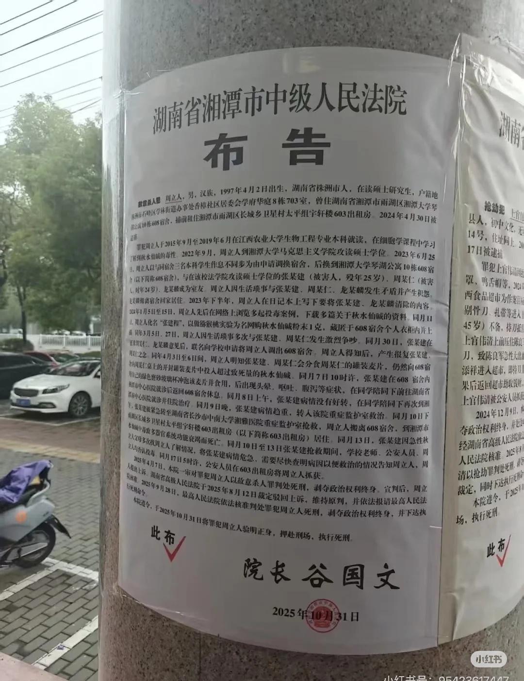 一声枪响,湘潭投毒案落幕❗️ 法律最终给出了公正裁决:从一审死刑到二审维持原判,再到最高法死刑复核通过,每一步都彰显着"罪刑相适应"的底线——即便拥有高学历,一旦践踏生命,也必将付出最高代价。法院认定他主观恶性极深、手段残忍、社会影响恶劣,死刑判决无可辩驳。 这起案件总让人想起清华朱令案、复旦林森浩案,它们反复敲响警钟:知识从来不是人的"免罪符",若没有对生命的敬畏,再专业的学识也只会沦为凶器。我们拼尽全力追求教育,终究是要培养"健全的人",而非"高智商的恶"。热点湘潭大学 投毒周立人 死刑 湘潭投毒案警示 法律面前人人平等 坚决打击犯罪