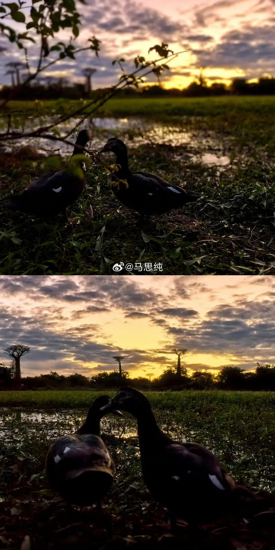 美丽的落日,两人分享了近乎一个角度的照片(其他人也发了但是都不是这个角度)