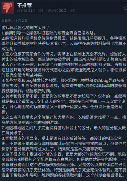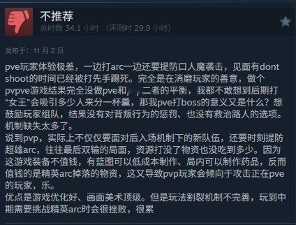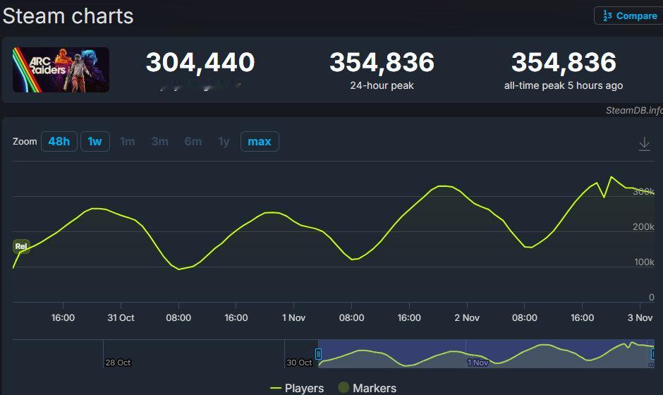 SteamDB数据显示,末世搜打撤游戏《ARC Raiders》在Steam平台上的在线人数峰值已突破35万人,标准版售价199.64元,支持中文,目前国区好评率为58%,全语言好评率为89%。部分玩家表示游戏目前存在排队过久、游戏内容量不足、PVE与PVP玩家互相影响游戏体验等问题。