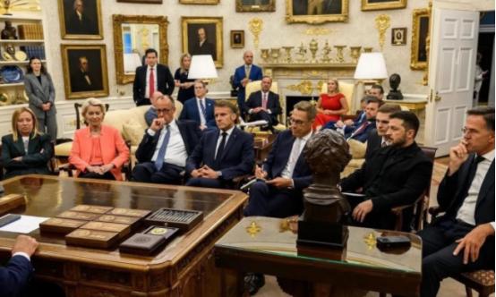 2025年名场面:欧洲大佬们集体围观特朗普“上课”。 冯德莱恩假笑不敢抬头,默茨吕特紧张托腮狂偷瞄,梅洛尼冷脸抱臂不吭声,马克龙一脸“我忍我忍”……这哪是国际会谈,简直是班主任训话现场。西方这出“风景线”,果然一如既往好看。 会议室角落的翻译们都在强忍笑意。同声传译耳机里交替传出英法德语的慌乱停顿,某位随行人员手机震动声在凝固的空气里显得特别刺耳。冯德莱恩的助理第三次递上补充文件时,发现上司正在用指甲悄悄抠会议桌绒布。 这场面哪里像G7峰会现场,分明是教导主任在训诫逃课学生团。特朗普随手甩出的经济数据让吕特开始疯狂检索平板电脑,德国财政部长悄悄从后排递来计算器。当提到"汽车关税"这个敏感词时,连梅洛尼都下意识松开了环抱的手臂,转而抓紧了扶手椅的桃花心木雕花。 马克龙在茶歇时段的表现更值得玩味。他特意站在距离特朗普三米外的落地窗前,却始终用余光扫视着美国代表团的动向。当看到特朗普拍着冯德莱恩肩膀大笑时,法国总统突然对墙上的抽象画产生兴趣,但手里端着的马卡龙迟迟没送到嘴边。 媒体区早就炸开了锅。路透社记者数出梅洛尼在90分钟会议里换了七次坐姿,彭博社镜头捕捉到吕特把同一页会议纪要反复翻阅了十二遍。最绝的是美联社的长焦镜头,居然拍到了默茨笔记纸上密密麻麻的涂鸦——全是反复描粗的"危机管理"单词。 特朗普显然很享受这种掌控全场的氛围。他说话时刻意将座椅转向欧洲代表团最集中的区域,翻动文件时故意让纸张发出哗啦声响。某个瞬间他突然停顿喝茶,整个会议室顿时只剩下空调送风声,七位欧洲领导人同时抬头张望的场面,简直像极了课堂突击检查时心虚的学生们。 这场政治戏剧的荒诞感在合影环节达到巅峰。摄影师反复要求"大家靠近些",特朗普自然站到C位,右侧的马克龙嘴角维持着标准微笑弧度,但插在西裤口袋里的拳头清晰可见布料褶皱。站在边缘的吕特似乎想用荷兰式幽默活跃气氛,刚说了半句玩笑话就被梅洛尼的冷眼冻了回去。 当特朗普最终甩出"重新评估跨大西洋关系"的结论时,冯德莱恩的钢笔终于滑落在地。金属撞击大理石地面的清脆声响,恰好为这场外交滑稽戏敲下了休止符。记者们后来发现,欧盟委员会官网的会议通报比往常晚了三小时发布,而爱丽舍宫当晚的例行记者会直接取消了提问环节。 这些细节拼凑出的政治图景,比任何分析报告都来得生动。就像网友调侃的,这出"西方特色风景线"确实比虚构剧集更有追更价值。不过散场时有个耐人寻味的插曲——梅洛尼突然用流利英语对特朗普说了句"期待下月再会",让原本要离开的记者们又纷纷掏出了录音笔。