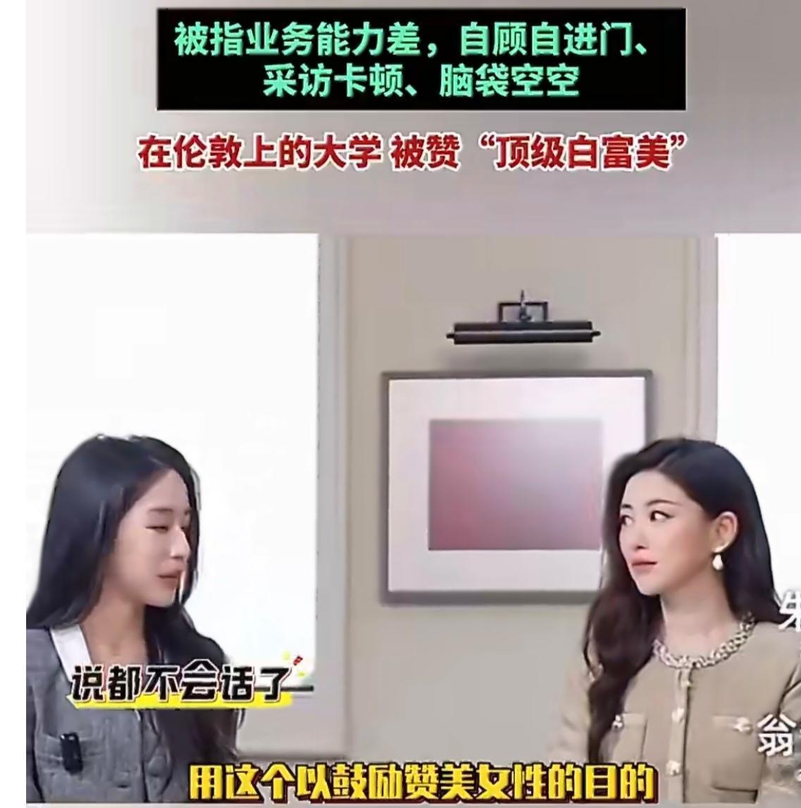 翁青雅跨界主持翻车,朱珠遭“工伤”引热议 11月1日,恋综红人翁青雅跨界主持专访演员朱珠,现场堪称“社交灾难”,朱珠工伤等话题火速冲热搜。 这位毕业于伦敦艺术大学传媒学院的“顶级白富美”,全程失误不断:自顾自进门留朱珠关门、抢先入座,采访时频繁卡顿、提问浅薄,需朱珠主动救场 。网友痛批其礼仪与业务能力双缺失,虽事后致歉称“太紧张”,仍难平争议。