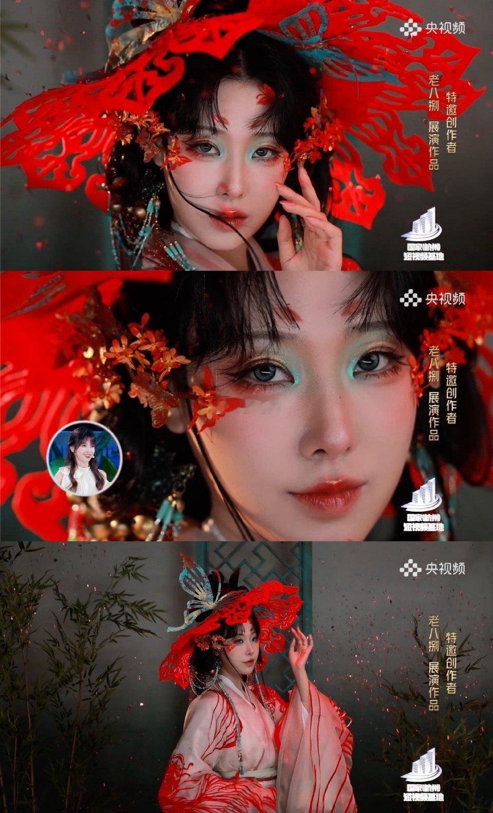 王冰冰眼睛都看直了不是夸张,是真的愣住了:青瓷色做眼妆,非遗剪纸当衣饰,连市花都成了妆容的呼吸感,东方美原来可以这么鲜活、这么有力量。