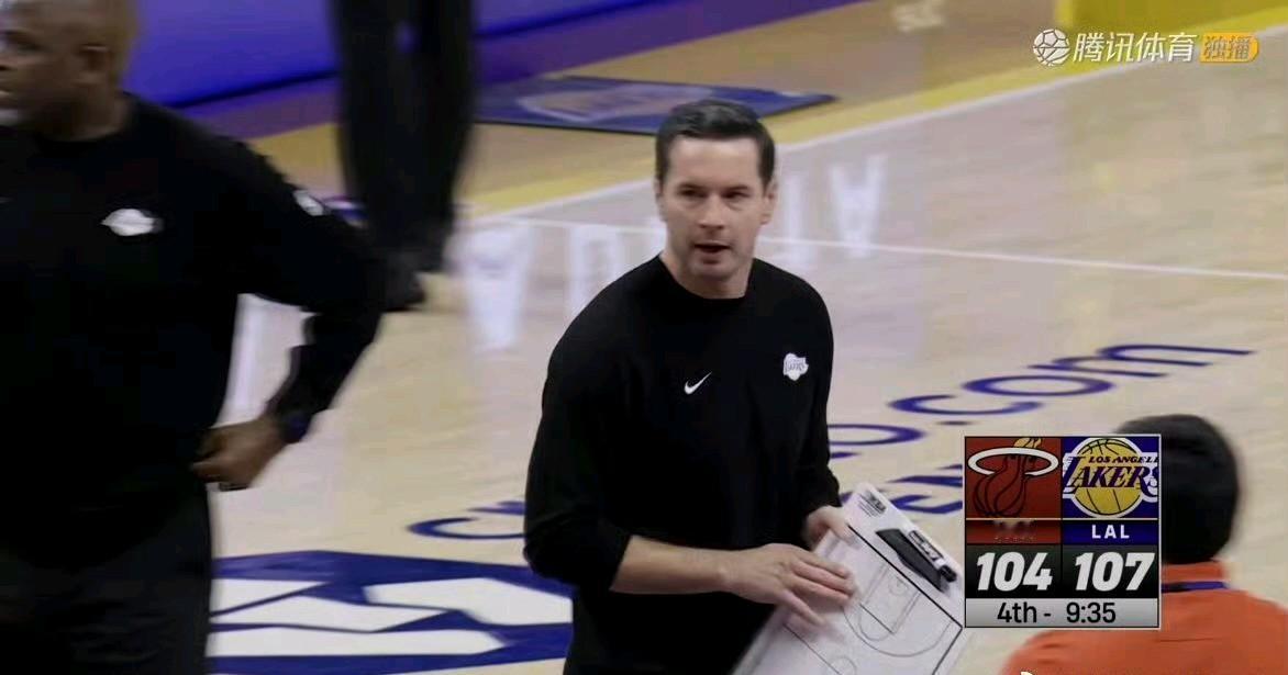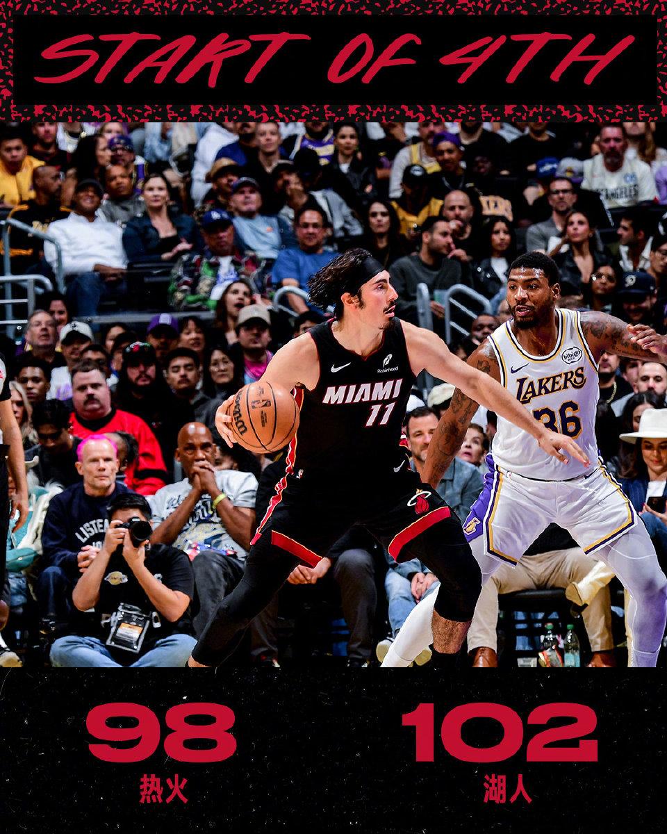 热火在第三节打出35-25将分差追至4分。雷迪克有点生气,第四节被追到104-107,只剩3分的领先优势。 难道说湖人要成为“湖四崩”?