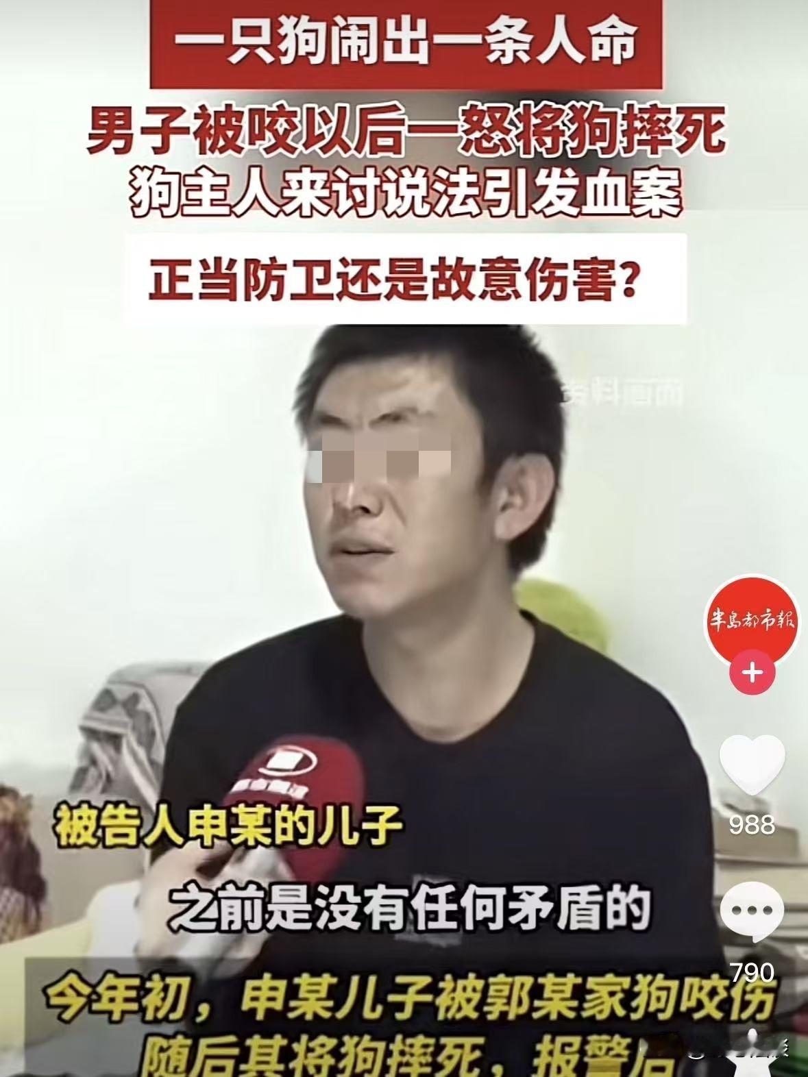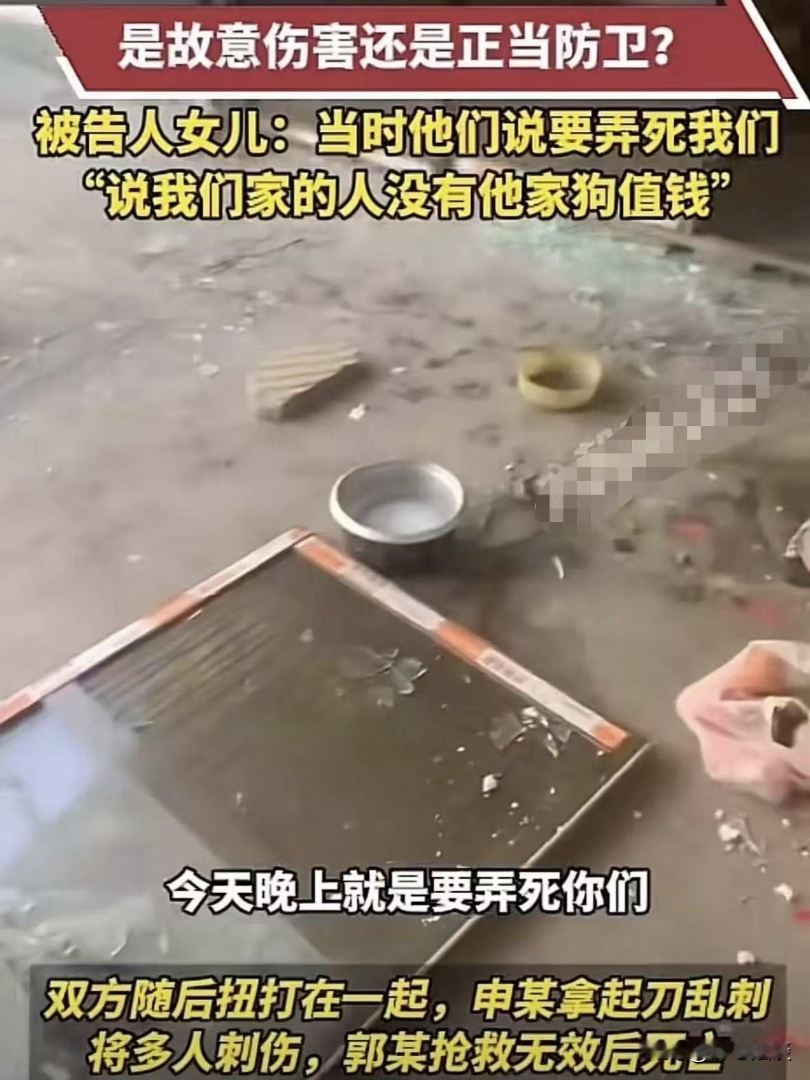 山西长治,男子被狗咬伤,一气之下将狗摔死,却没想到引发了狗主人的报复,当天晚上狗主人带领多人砸窗踹门来男子家理论,双方发生激烈争吵,后面直接开始并殴打男子父亲,慌乱中,男子父亲慌乱中误捅了狗主人,导致抢救无效身亡,随后男子父亲因故意伤害被起诉,男子:我父亲是正当防卫! 申先生在楼下遛弯,平白无故被郭某家一只没栓绳的狗咬伤。 那狗跟疯了一样,上来就对申先生的腿一顿撕咬,给申先生疼的浑身发抖。 眼见那狗控制不了,也没人管,申先生一把抓住那条狗,直接将狗摔死。 妻子得知后赶紧带他去医院缝合伤口以及打狂犬疫苗。 申先生越想越气,找到郭某要说法,可对方的态度简直颠覆了他的认知。 郭某半句不提自己受伤的事,反而一口咬定他是凶手,张口就要巨额赔偿,还放狠话敢摔我的狗,等着付出代价。 申先生一听这话直接报了警,去派出所等待协调。 民警多次打电话通知郭某,对方要么直接挂掉,总之就是你说啥我都听不见。 申先生当时只当这是气话,想着等对方消了气总能坐下来谈,却没料到,郭某真的在酝酿一场报复。 这边申先生还在派出所等郭某去解决问题,而此时的郭某也没闲着。 他带了一帮人前往申先生家,把门也踹烂了,窗户也咂了,大喊让申先生出来偿命。 此时申先生父亲说道,你的狗不拴绳把人咬了还有理了? 对此,双方发生了激烈争吵,最后竟然直接动起了手。 一帮人将申先生父亲围起来殴打,打的他头昏目眩,感觉肋骨都要折了。 家人没在家,家中只有申父一人,混乱中,他的手摸到一把水果刀,求生的本能让他抓起刀胡乱挥舞。 申父大喊:都别过来,再打我就不客气了,可没人听他的,还是一个劲地往前冲。 万万没想到,申父的这一通挥舞,导致多人被刺伤,而郭某最为严重,被送进医院抢救,可回天乏力,最终身亡。 另一边,申先生在派出所等了一下午也不见人来,最后只能回家。 等到家时,映入眼帘的是满地狼藉,打碎的花瓶、撕破的窗帘,还有地上没干的血迹。 申先生此时后悔,他是被咬伤了,但如果当时自己没有冲动摔死狗子,是不是就不会发生这样的事。 随后,警方介入调查,申父因涉嫌故意伤害罪被提起公诉,两个家庭的平静生活彻底被打破。 对此双方发表了不一样的看法,申家主张:郭某一方私闯民宅、打砸围殴属不法侵害,申父持刀是正当防卫,只为自保。 郭家反驳:上门方式虽不妥,但对方不该用刀致人死亡,已超出防卫合理范围,属防卫过当甚至故意杀人。 《民法典》第1245条:饲养的动物造成他人损害的,动物饲养人或者管理人应当承担侵权责任,但是,能够证明损害是因被侵权人故意或者重大过失造成的,可以不承担或者减轻责任。 郭某家狗未拴绳咬人,应承担侵权赔偿责任。 《刑法》第245条:非法侵入他人住宅的,处三年以下有期徒刑或者拘役。 郭某等人砸窗踹门闯入申家,涉嫌非法侵入住宅罪。  《刑法》第20条:为了使国家、公共利益、本人或者他人的人身、财产和其他权利免受正在进行的不法侵害,而采取的制止不法侵害的行为,对不法侵害人造成损害的,属于正当防卫,不负刑事责任。 正当防卫明显超过必要限度造成重大损害的,应当负刑事责任,但是应当减轻或者免除处罚。 时至今日,申父面对围殴持刀反击,是否属正当防卫或防卫过当的争议焦点。 《关于依法适用正当防卫制度的指导意见》第11条:防卫行为是否过当,应当同时具备“行为明显超过必要限度”和“造成重大损害”两个条件。 判断申父是否防卫过当的关键标准,需综合侵害强度、手段相当性及损害后果等。 其实仔细想想,这场事故里没有真正的赢家。 要是郭某能管好自己的狗,咬了人主动承担责任,而不是放狠话报复。 要是申先生能在被咬伤后先冷静维权,而不是一时冲动摔死狗。 要是郭家人能通过合法途径解决纠纷,而不是带着一群人砸门闯宅。 这其中任何一个“要是”能成真,都不会走到家破人亡的地步。 直到现在,大家还在争论申父到底算不算正当防卫,但不管最终判决如何,两个家庭的破碎已经成了定局。 这场悲剧也给所有人提了个醒:养狗要拴绳,伤人要担责,遇到矛盾别冲动,好好说话能解决大部分问题。 毕竟,一条狗的命换不来人的命,一时的冲动更换不来家庭的完整。 对此,你怎么看待这件事呢? @静心法谈 学法辨是非,慬法不吃亏。