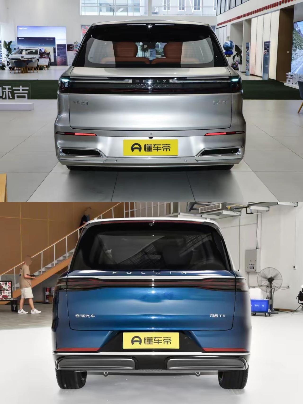吉利银河M9叹息一声:既生瑜何生亮,既生M9合生T11。 前边吉利银河M9扔了一个价格炸弹,后边奇瑞绷不住了,也把奇瑞风云T11的价格降低到20万以内,同为大六座的车型,不知道谁更值得购买? 【外形对比】 从外形来看,吉利银河M9就像是大号的吉利银河星舰7,不如奇瑞风云T11横平竖直的设计更大气,T11前脸的镀铬条把整车视觉拉长了,让车子看起来更大,双拼色的车身也让车子沉稳中带着时尚。两车都没有用分体式大灯,但是头灯与尾灯用的贯穿一体式的,也算是主流设计。 【配置差异】 吉利银河M9最大的优点是低配到高配都可以选择带有千里浩瀚H5智驾系统的版本,奇瑞风云T11只有24万的顶配是算力200tops的猎鹰700系统,其他是128tops算力的猎鹰500系统,所以吉利银河M9可以选择的范围更大。 奇瑞风云T11配置更实诚,最低配前两排就有座椅加热通风按摩的功能,除了最低配还标配了方向盘加热功能,这对于南方与北方朋友都很油耗。而吉利银河M9则需要中高配才有座椅通风加热功能。 【智驾系统】 奇瑞风云T11与吉利银河M9智驾系统半斤八两,谁也做不到高阶智驾系统,也就是复杂路况博弈有点费劲,也做不到路口掉头,作为L2+级别的辅助驾驶系统,简单的城市辅助驾驶,快速路与高速领航还是很不错的,我建议对两车智驾系统不要走太高的期望,毕竟算力最高只有200tops,所以计算能力有限,但是最低配的T11就配备了遥控挪车与自动泊车,这是M9高配才有的。 【购车推荐】 如果不追求动力的情况下,我建议购买奇瑞风云T11最低配的18.38万,毕竟9秒多的加速真是不够快,如果满载可能会超过10秒的加速实在是有点不够用;我建议还是买22.99万的四驱影院版,不仅动力更好,配置也更高了,尤其是第三排也有了座椅加热,还有二排座椅记忆。 吉利银河M9因为是插电混动系统,所以加速更快,高速巡航能耗也会更低,智驾系统也便宜一点,但是综合实用配置不如T11实在。 奇瑞风云T11起步就是33.68度的电池,纯电跑个150公里没问题,且全系标配双层夹胶玻璃,静谧性也更好。 吉利银河M9起步18.6度电池有点不够意思了,属于拉低售价的做法,而高配41度电池比T11的高配39度电池也是大的有限。 综合来看奇瑞风云T11没上市的时候,吉利银河M9就是王炸的代表,但是跟T11一比性价比又差了很多。 最后说一句,奇瑞风云T11高强度钢占88%,还有10多个安全气囊,安全属性拉满了,妥妥的公路坦克。 【总结】 奇瑞风云T11牙膏挤爆了,虽然政策不让打价格战,但是新出的产品定低价销售也不算过分,除了两驱版不如其他电车那么亮眼以外,在低价格的前提下,实在是挑不出毛病了。 还是那句话,不在乎动力就买18.38的最低配,在乎动力就买22.99万的四驱影院版。吉利银河M9也不是不能选,只不过性价略微低一点,我还是优先推荐买T11。 【请到“懂车帝APP”查看投票】