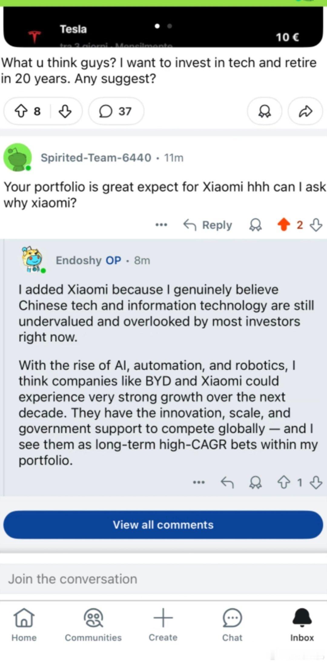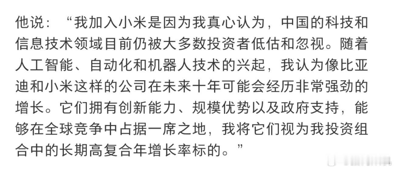 外国有个老哥投资清单里面一堆高精尖企业里面混了个小米,别人问他为什么,他匡匡夸了一顿小米,非常看好小米的发展