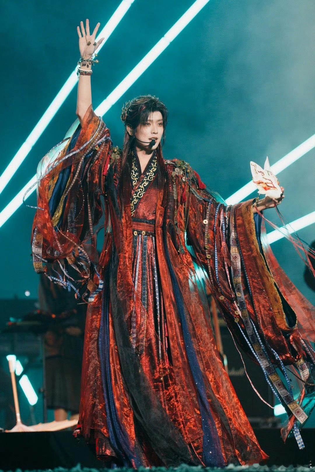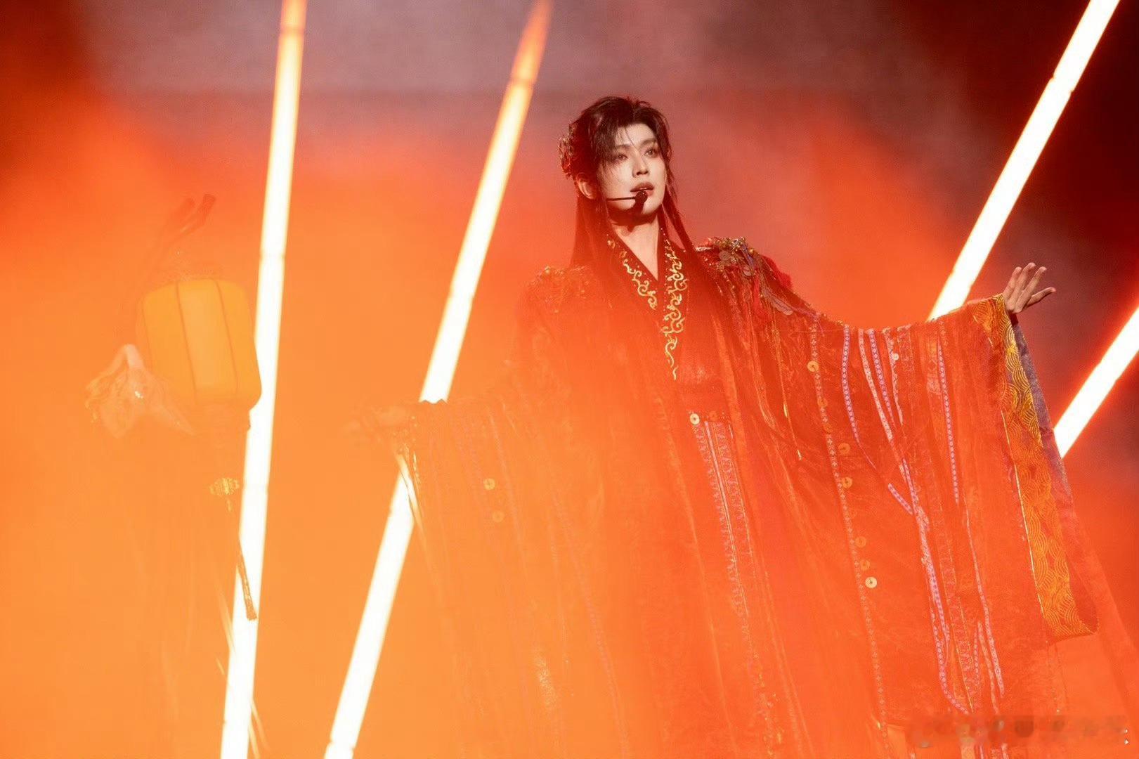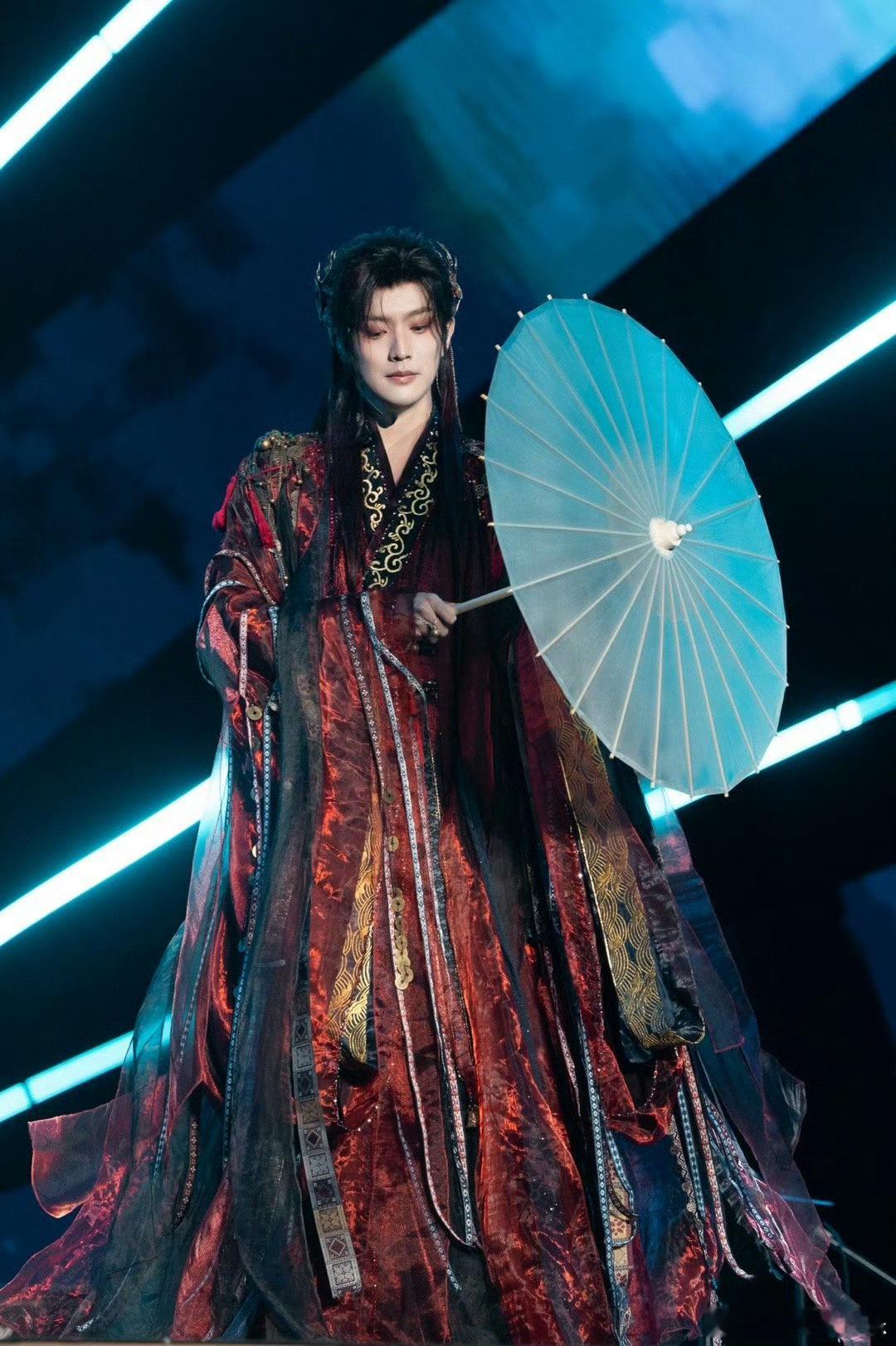这居然是王敬轩 王敬轩完美诠释魅魔美学!暗纹提花长袍+半透纱披风,建模般的脸庞在舞台灯光下更显魅惑,唱跳间张力爆棚,长发造型太戳人!