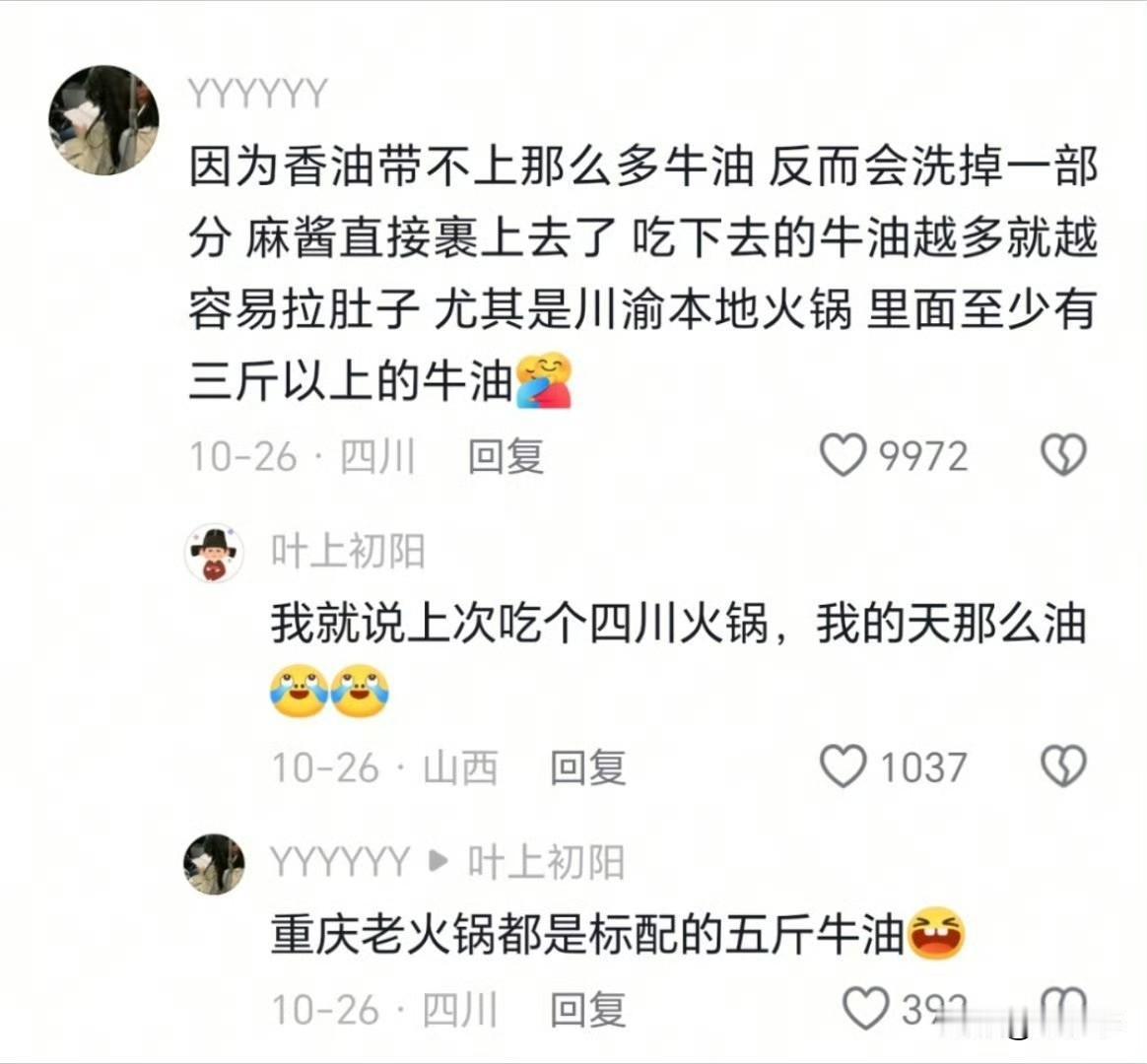 主要是因为牛油,牛油的凝固点是35度-40度左右,也就是在胃里吃进去以后可能就凝固了,这时候再吃点冰或者其他东西,等于让牛油凝固,或者在胃里凝固的牛油里面加一些消化不了的东西,就很容易拉肚子[大笑][大笑][大笑]重口牛油锅底 炒牛油