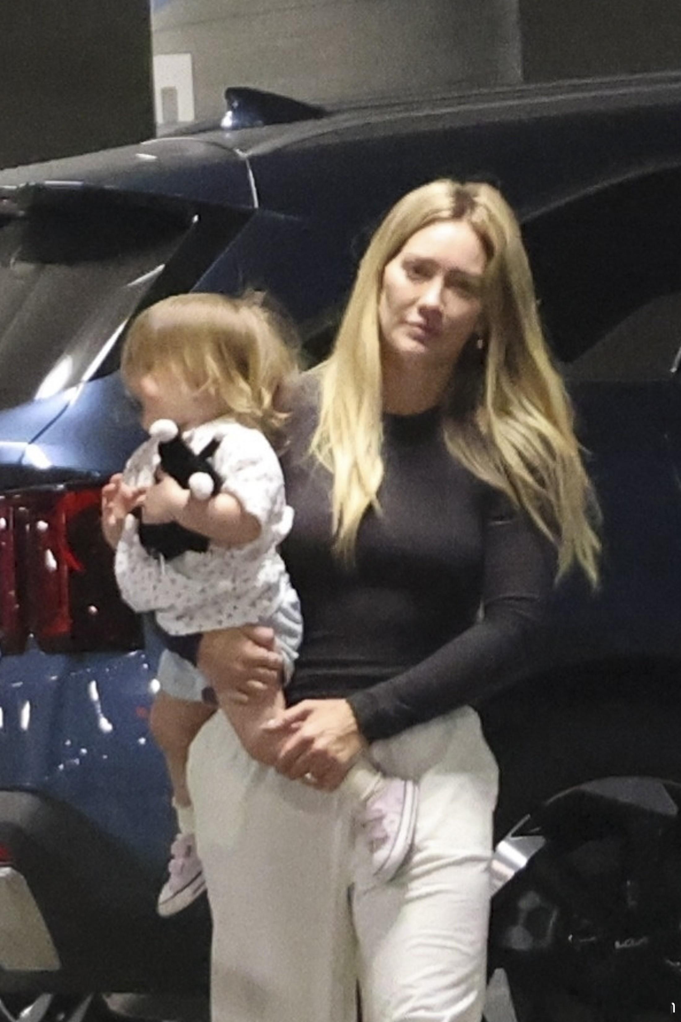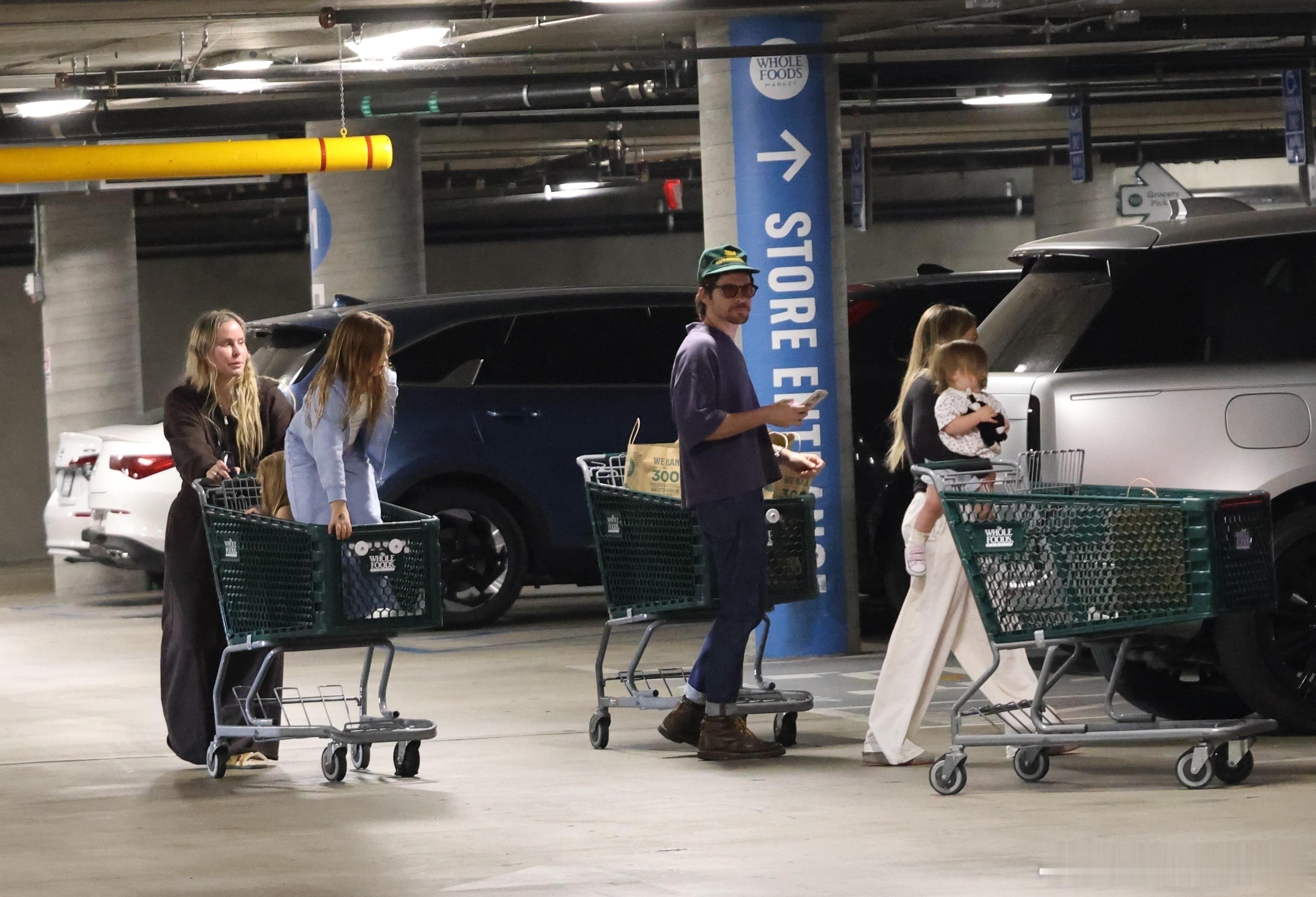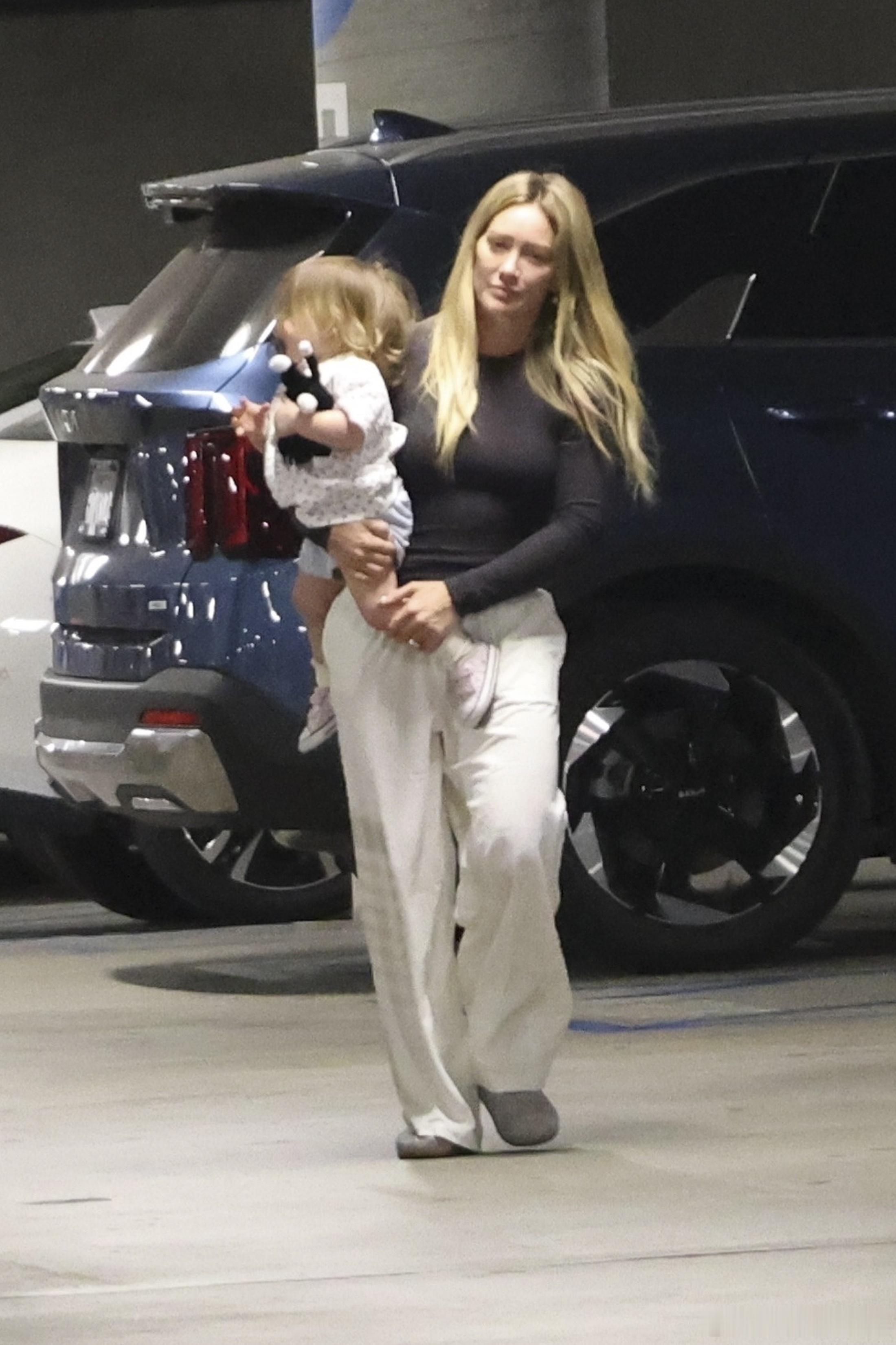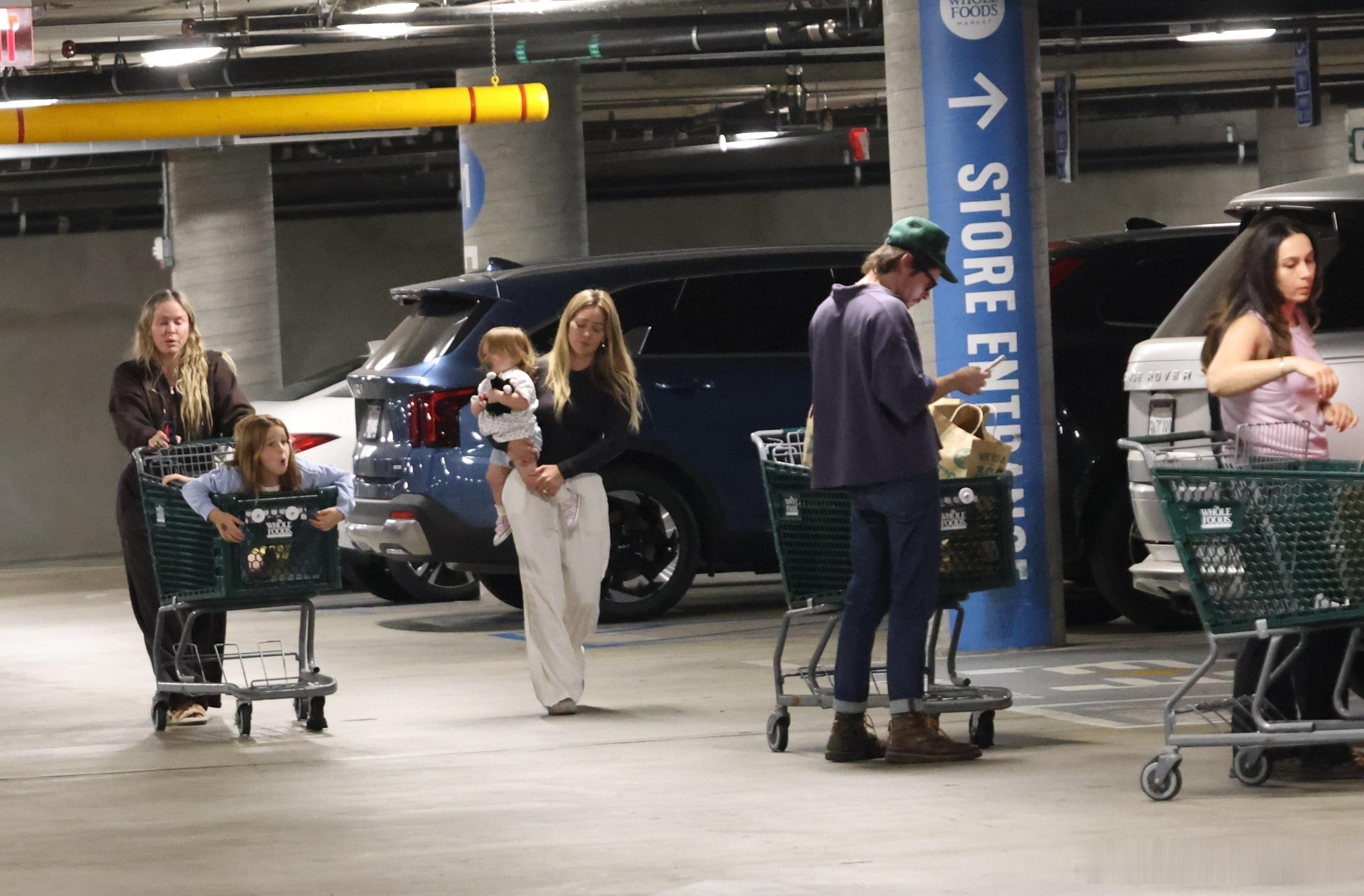 hilary duff希拉里达芙和老公Matthew koma带着三个女儿banks、mae和Townes在斯蒂迪奥城外出,购物后离开Whole Foods超市,达芙反向抱娃,好强