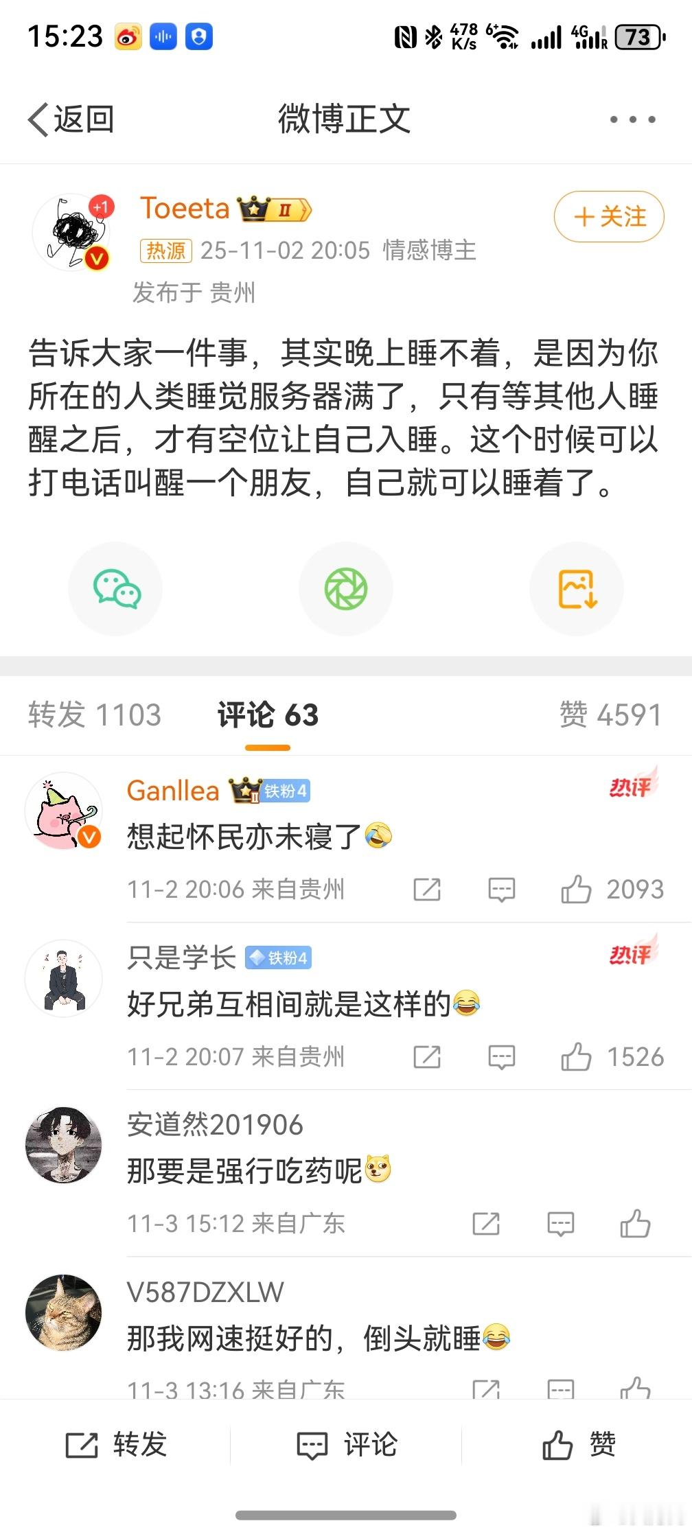 睡不着是因为人类睡觉服务器满了 ???好家伙,好一个,怀民亦未寝呀[doge]