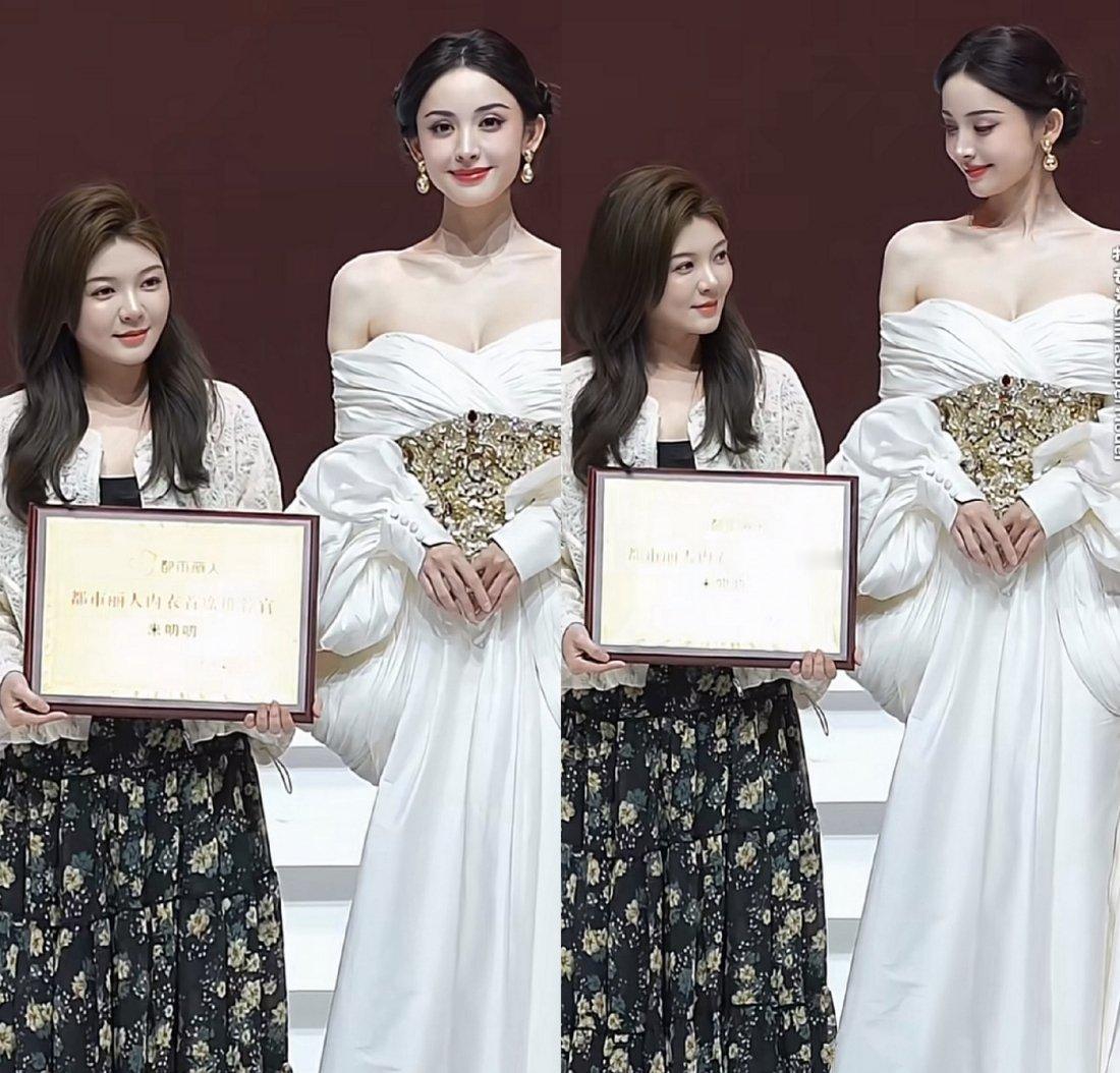 不比不知道,蒋欣原来这么白!微博视界大会上的她露出香肩,雪肌白的发光,把一旁的关