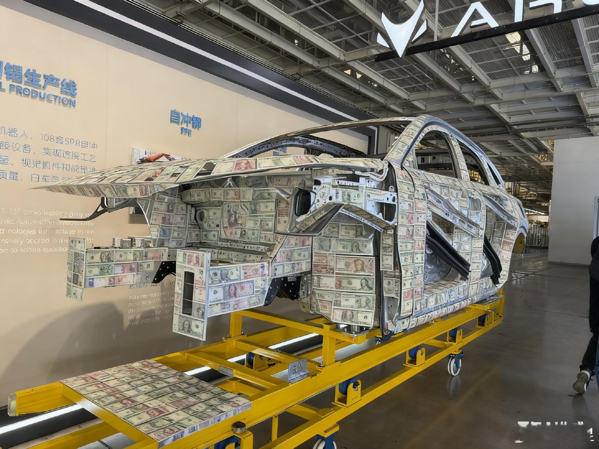 北汽新能源极狐品牌用户运营中心副总经理今天发了好多关于极狐阿尔法T5白车身的内容,其中就有这么一条——用AI把白车身变为全部由钱币拼接而成的……
