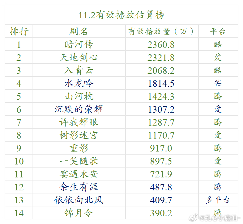 《水龙吟》5.7分《暗河传》7.1分《山河枕》5.3分