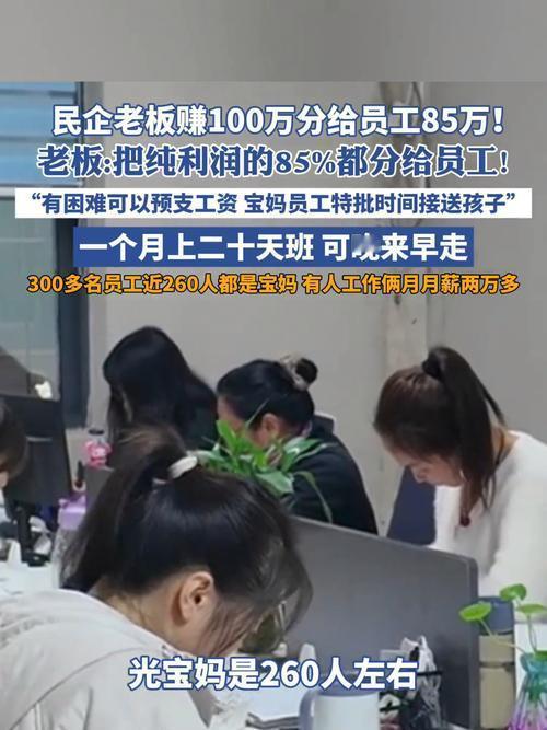 这格局,活该他赚钱!河南icon一老板挣100万给员工分85万 这格局,活该他赚钱!河南icon一老板挣100万,竟然舍得给员工分掉85万——这背后到底藏着怎样的故事?当我们看到这样的新闻,难免会心生羡慕,甚至有点羡慕嫉妒恨:老板赚得多,员工拿得多,大家都笑着走在了共赢的路上。 但你有没有想过,这样的“慷慨”背后,究竟隐藏着什么?难道真的是“舍得”,还是一种深思熟虑的战略布局?更重要的是,这样的格局,为什么在当今社会越来越少见?为什么我们习惯了“拼命赚钱”,却少有人愿意真正“放下身段”去关心员工的幸福? 其实,这个故事的核心,不仅仅是金钱的分配,更是一种价值观的体现。老板的“格局”,代表着他对企业、对员工、甚至对未来的看法。用心经营企业的人都知道,企业的长远发展,绝不是靠压榨员工、拼命压榨出来的,而是靠建立一种信任、尊重和共赢的关系。 很多人可能会说:“你这是理想化吧?谁不想多赚点?”但事实是,真正能做到“以人为本”的老板,才是真正的赢家。因为,他们懂得,员工的幸福感,才是企业持续发展的最大动力。只有当员工觉得被尊重、被关心,他们才会全身心投入到工作中,企业的未来才会更加光明。 这也让我想到,现代社会中,越来越多的“成功人士”开始反思:赚钱的意义到底是什么?是为了炫耀,还是为了让生活更有温度?当我们看到这样的河南icon老板,把85%的利润都分给员工时,或许我们应该反问自己:我们是不是也应该换个角度看待成功?成功不只是数字的堆积,更是心灵的富足和关系的和谐。 或许,这样的故事能给我们一些启示:在追逐财富的路上,不妨多一些“格局”,多一些“宽容”。因为,只有心怀大爱的人,才能真正走得长远,赢得别人的尊重和自己内心的平静。 你怎么看?是不是也觉得,这样的老板值得我们学习?还是说,你有更好的“格局”故事想分享?欢迎留言,一起探讨这个社会最需要的,是不是多一些“善意的分配”和“真心的关怀”?毕竟,只有心怀善意的企业,才能在激烈的竞争中脱颖而出,成为时代的真正赢家。河南企业好老板 河南良心老板
