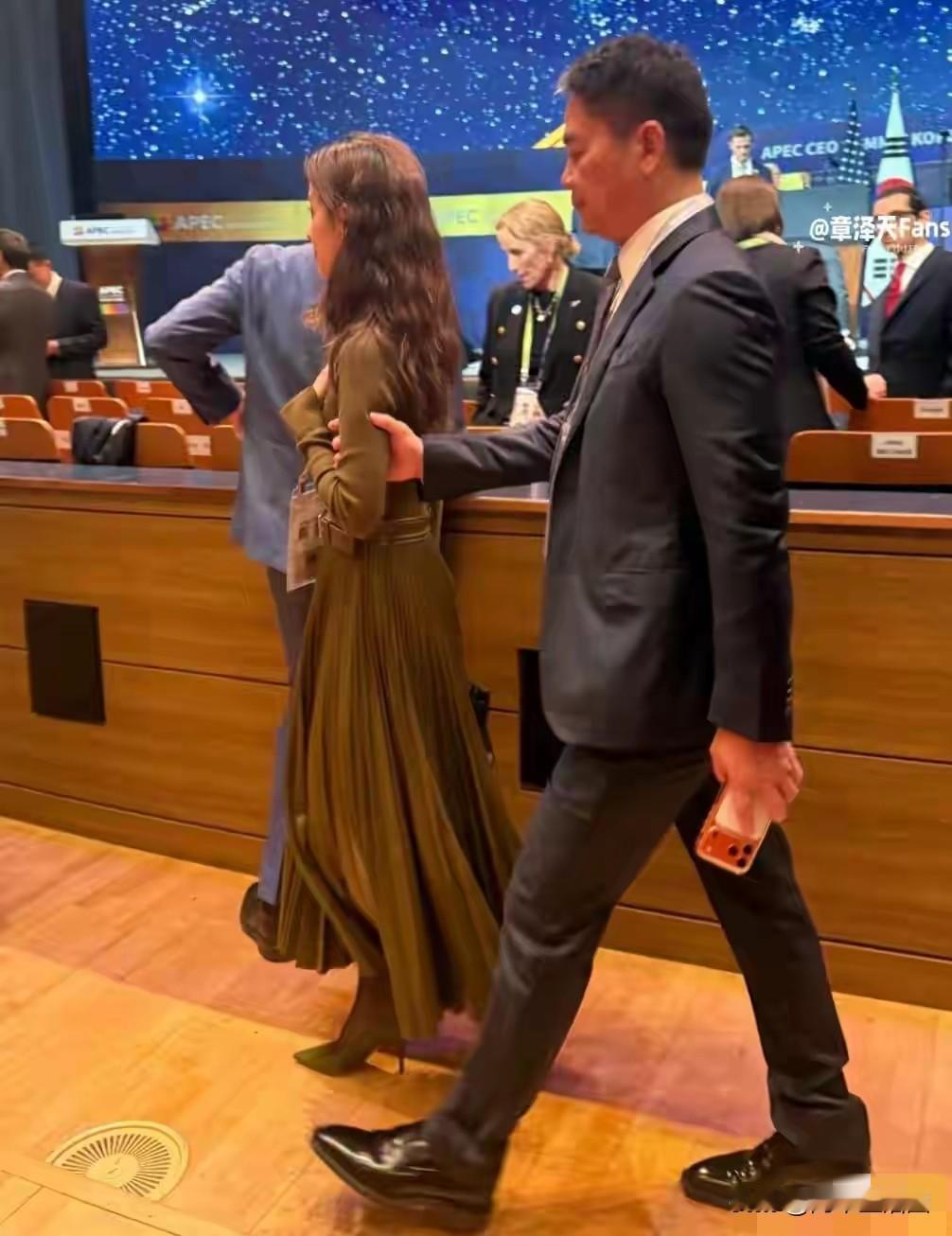 刘强东章泽天这波久违合体,看得我浑身不自在,总觉得两人状态怪怪的。 镜头里刘强东跟在后面扶着章泽天胳膊,手伸得老长,跟拽着个不相干的人似的。章泽天在前头走得又快又直,半点不回头,俩人差着大半个身位,说是搀扶,倒像完成任务的搭档。 这场景一出来,让我想起来当年黄晓明追着给杨颖提裙的画面,都是女方大步流星,男方凑上去维持体面。 台下两人交流也很少,刘强东皱着眉老看手机,章泽天身子往后仰着躲,明显不想挨太近。 想当年章泽天看刘强东那满眼崇拜的劲儿多真,现在章泽天是一个独立女性,是一个成功的女性。 大概少了些崇拜和温柔。婚姻里的温度藏在眼神和指尖,装是装不出来的。 不管怎样,希望大强子好好的。好多京东兄弟都指望着他呢。