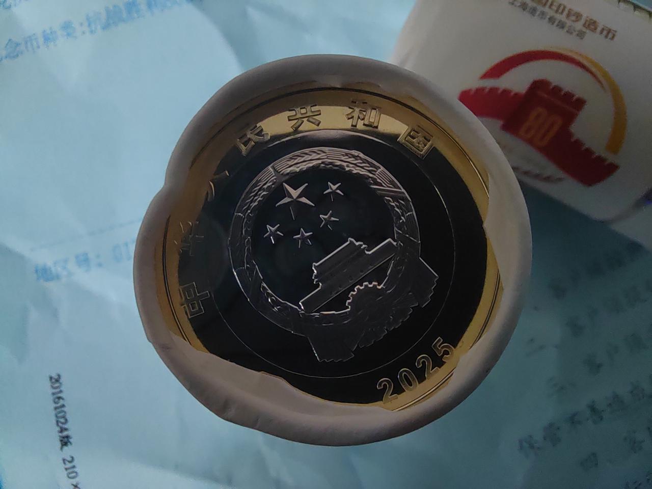 分享我这周有趣的事:今天兑换了中国人民抗日战争暨世界反法西斯战争胜利80周年普通纪念币! 很有纪念意义一枚纪念币这枚纪念币太有意义了! 正面的国徽和“中国人民抗日战争暨世界反法西斯战争胜利80周年”字样超醒目,背面的“1945-2025”和和平鸽图案更是把历史厚重感拉满。