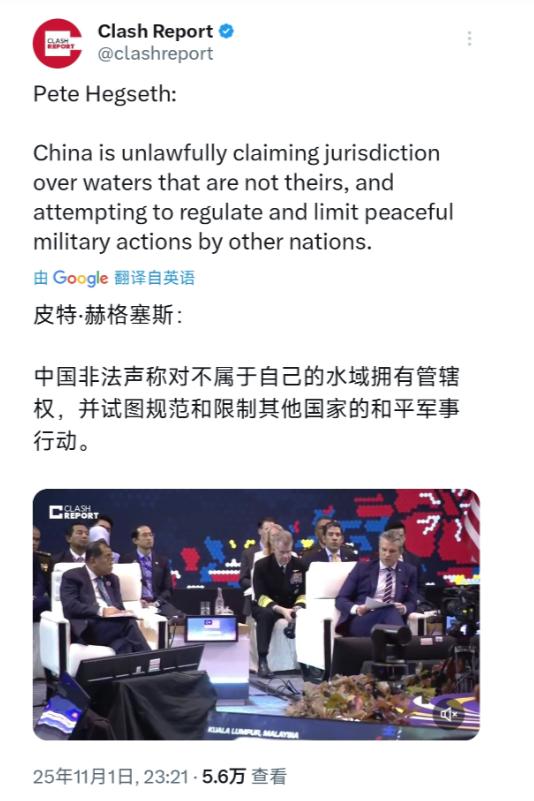 美国战争部长皮特·赫格塞斯北京时间11月1日晚,表示:“中国非法声称对不属于自己的水域拥有管辖权,并试图规范和限制其他国家的和平军事行动。” 美国战争部长皮特·赫格塞斯这话一出口,纯属睁眼说瞎话,啥叫“中国非法声称管辖权”?南海这片“祖宗海”,咱中国人在这儿踩的脚印、撒的渔网,比美国整个国家的历史都长,轮得到他一个外人指手画脚? 咱先拉拉历史扯扯理,这些都不是瞎编的。早到东汉的时候,学者杨孚就把南海那些岛礁叫“涨海崎头”,写进了《异物志》里,这都快两千年了。到了唐宋,朝廷干脆把这些岛礁划给海南的官府管,还派水师去巡海,跟现在海警巡航一个意思,这咋就不算有效管辖了? 明清时候就更实在了,明朝设了海南卫,清朝专门立了崖州协水师营,当兵的定期驾着战船在南海转,礁盘上哪块石头尖都门儿清。沿海渔民更是世世代代在这儿讨生活,打鱼、避风,高兴了还在岛上修修房子,西沙甘泉岛挖出来的唐宋时候的住的地方,就是最铁的证据。 连19世纪英国测量船都在《中国海指南》里写着,鸿庥岛、景宏岛的名字,是从中国渔民叫的“南乙”“秤钩”翻译过去的,这总不能是中国人拿刀架着他们写的吧? 再说说摆在台面上的道理。二战的时候日本占了南海诸岛,战后按《开罗宣言》《波茨坦公告》,这些被抢的地盘本来就该还回来。1946年,咱中国军舰开去南海,接收岛礁、派兵驻守,还立了石碑标明是中国的,整个过程光明正大。 那时候美国都通过外交问情况、申请测量这些方式,认了咱对南沙群岛的主权。联合国教科文组织1987年还托中国在南沙、西沙建海洋观测站,这难道是给“非法声称”的国家派活儿? 赫格塞斯说的“限制和平军事行动”,这话才叫没安好心。中国在自己的海域管事儿,从来都是对着那些挑事儿的来。你再看美国,动不动派军舰飞机闯南海搞所谓“航行自由”,去年一年就派了几十架次侦察机凑过来盯梢,这哪是“和平行动”?分明是揣着枪炮来搅浑水。 咱把话说明白,中国对南海的主权,是老祖宗传下来的,是打二战赢回来的,是国际法认下来的,三重保险锁得死死的。但这不是说咱要关起门过日子,这些年中国和东盟国家一直在谈南海行为准则,就是想让这儿变成和平合作的地方。可美国偏要跑来当“搅屎棍”,拿着“非法”的帽子乱扣,说到底就是不想看南海太平。 最后给赫格塞斯提个醒:想在南海说上话,先把历史书翻透,把国际法搞明白。中国的领土主权,不是谁嗓门大谁说了算,更不是靠施压就能撼动的。真为了地区和平好,就别搞双重标准,安安静静当个旁观者,比啥都强。