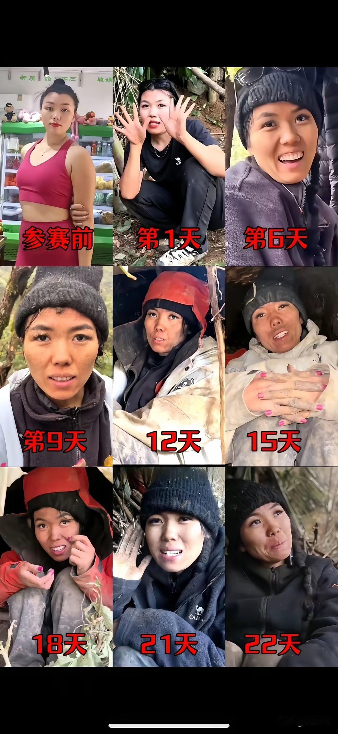 果然饿肚子就能瘦! 这哪是减肥啊? 这是“野生版换头术”!看这姐们 参赛前后的对比, 我直接瞳孔地震——参赛前是精致辣妹,10天不到脸直接“缩水”一圈, 22天后那状态,说是从原始森林刚窜出来的都有人信! 别光笑“颜值塌方”, 这事儿其实特戳人:咱们平时喊着“减肥难”,本质是没把自己扔到“没得选”的环境里。 果然饿肚子就能瘦! 你说要是给你20天“野生体验卡”, 是会瘦成闪电还是先想念奶茶外卖?
