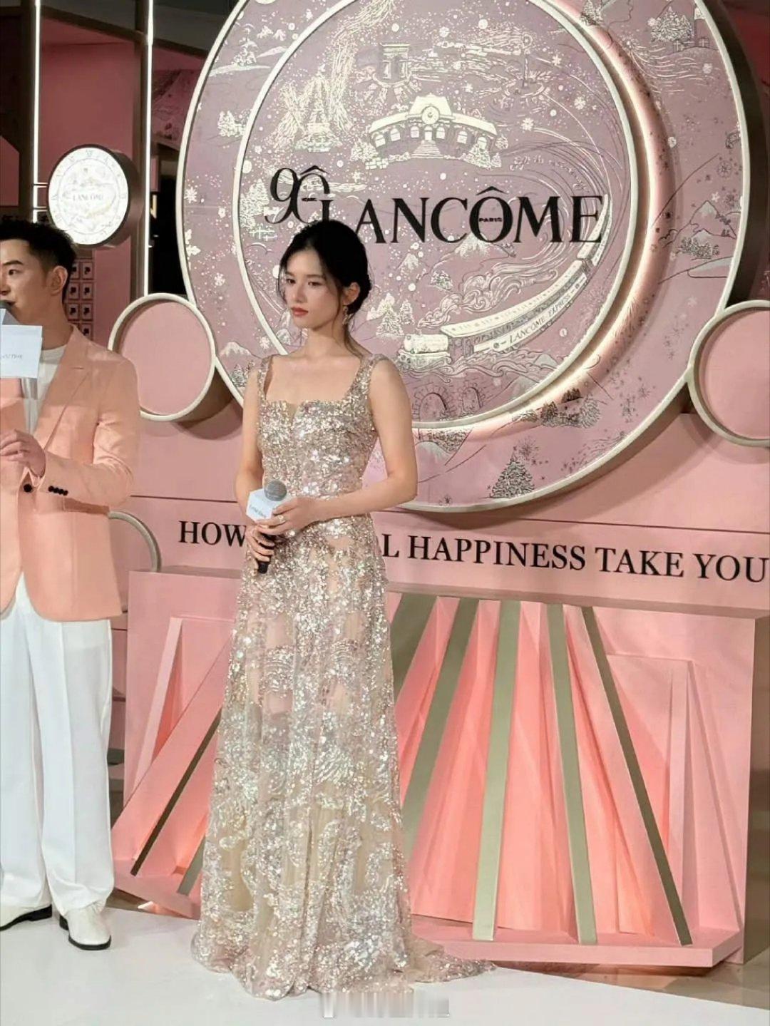 刘亦菲把死亡玫粉穿出了定制款的感觉,这种颜色普通人穿上分分钟黑三度,她居然能穿出