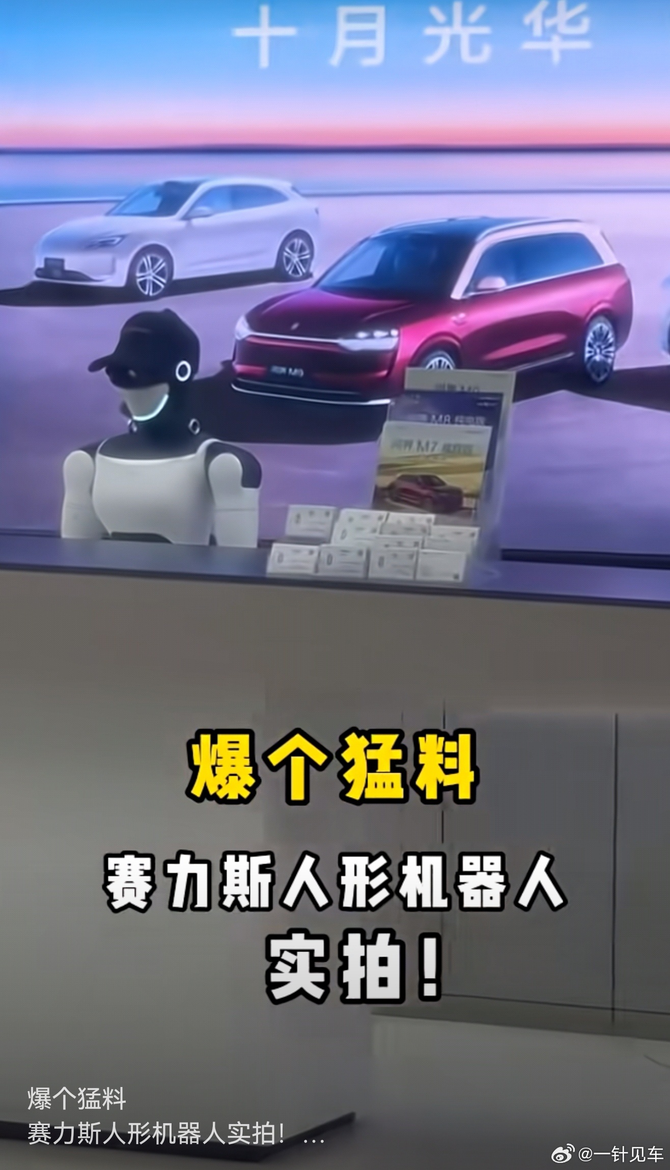 有网友疑似深夜拍到赛力斯人形机器人在门店测试,你们觉得这是要玩出什么新花样?[笑而不语]赛力斯人形机器人