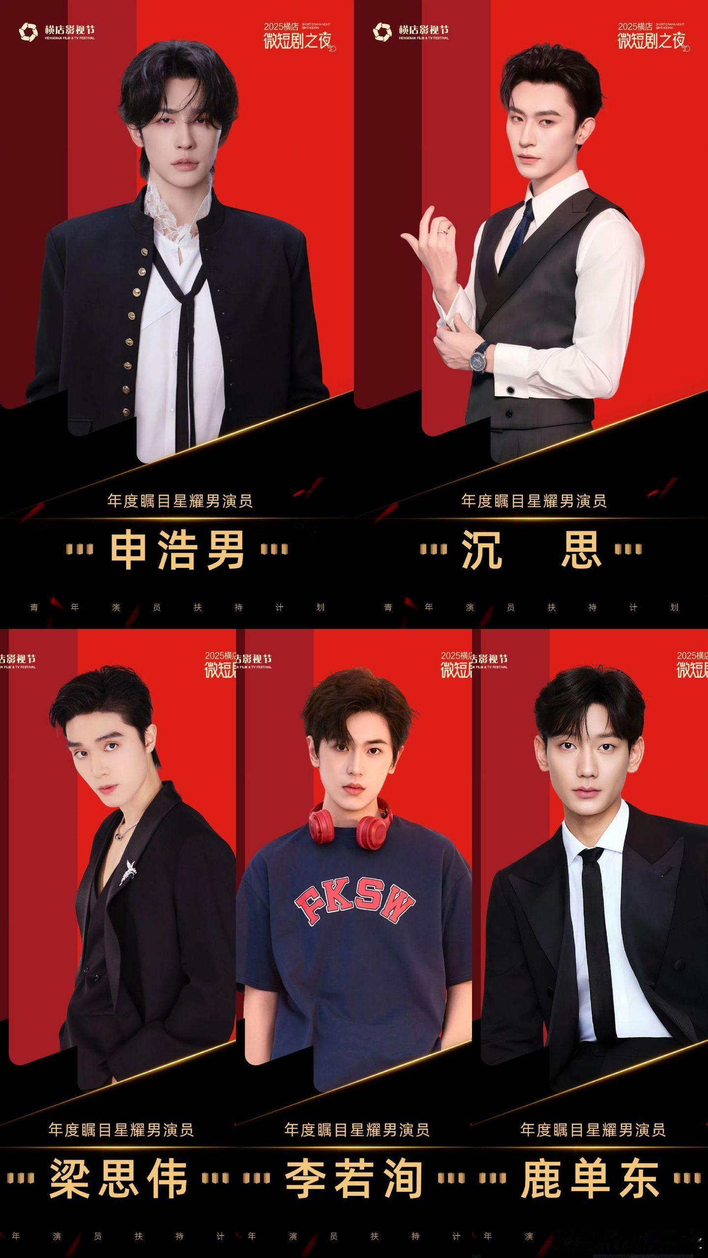 恭喜申浩男、沉思、梁思伟、李若洵、鹿单东获得2025横店微短剧之夜年度瞩目星耀男演员。
