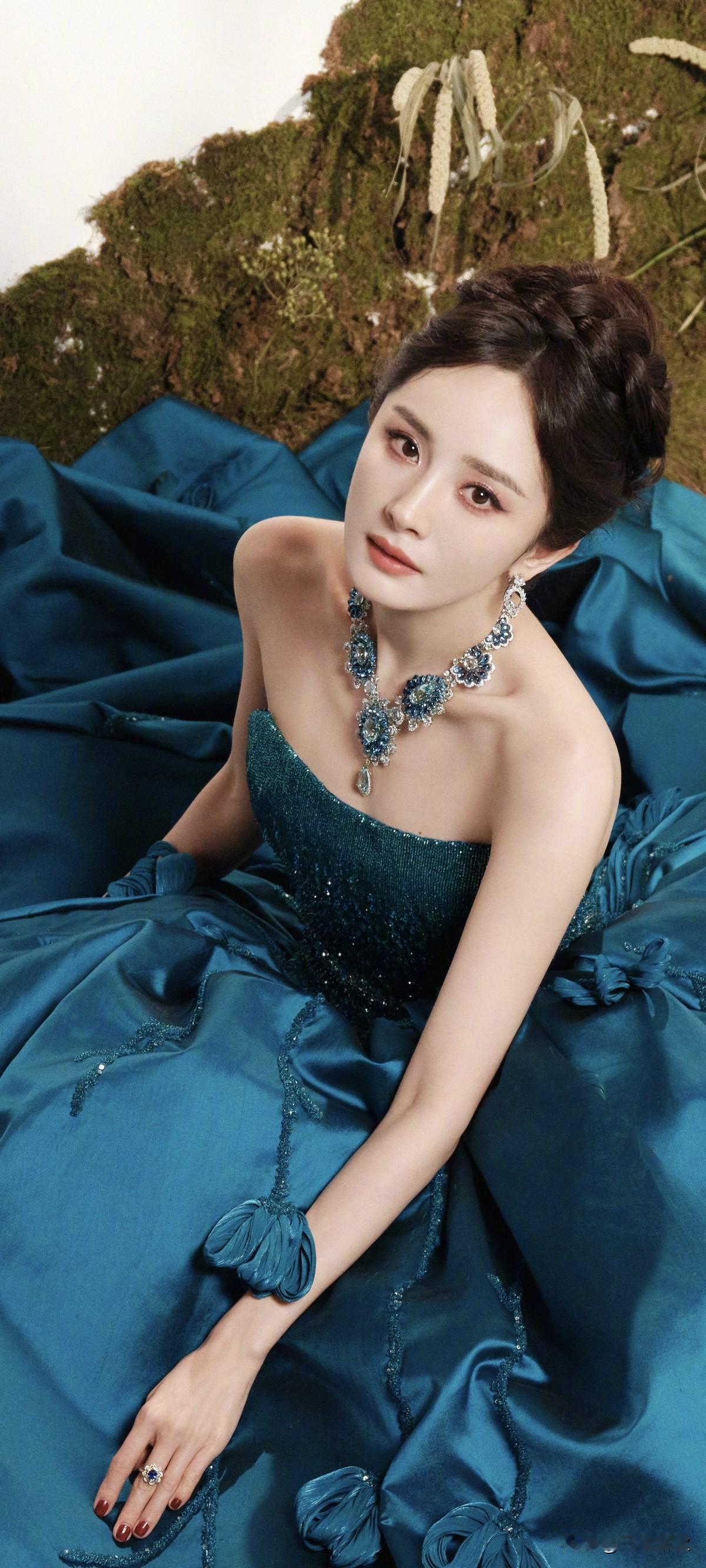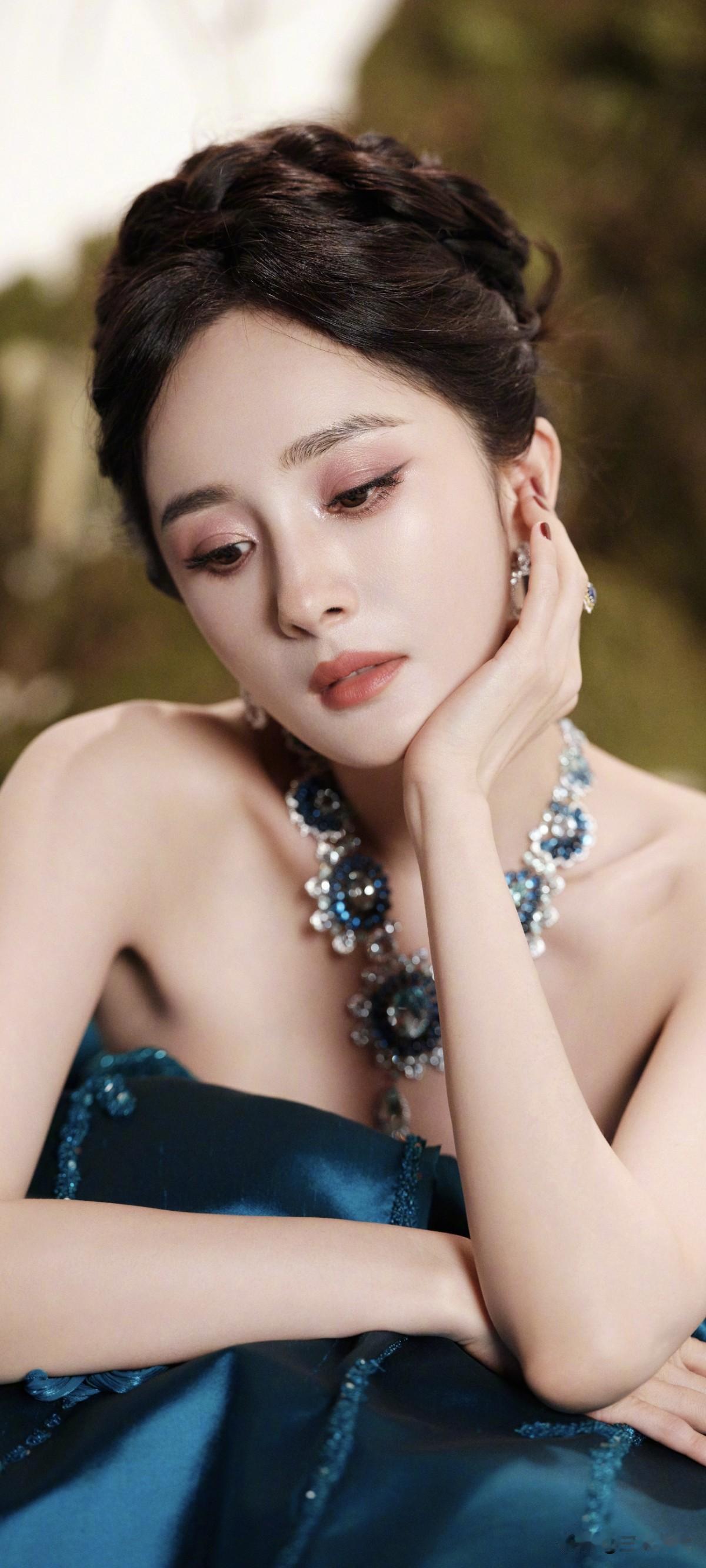 杨幂微博视界大会定妆照出图,这项链上的宝石好大啊!蓝孔雀女王驾到,这气场两米八!幂姐美炸!!!