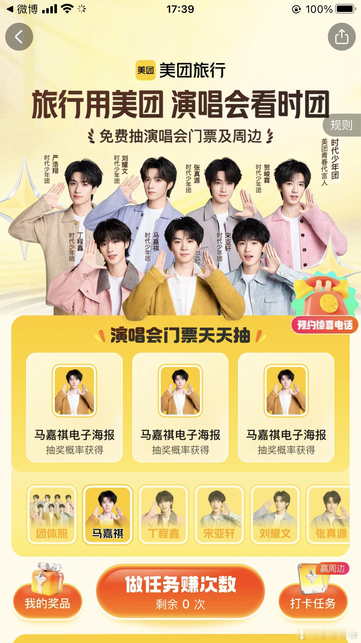 上美团,可以抽时时演唱会门票,和惊喜周边礼盒。