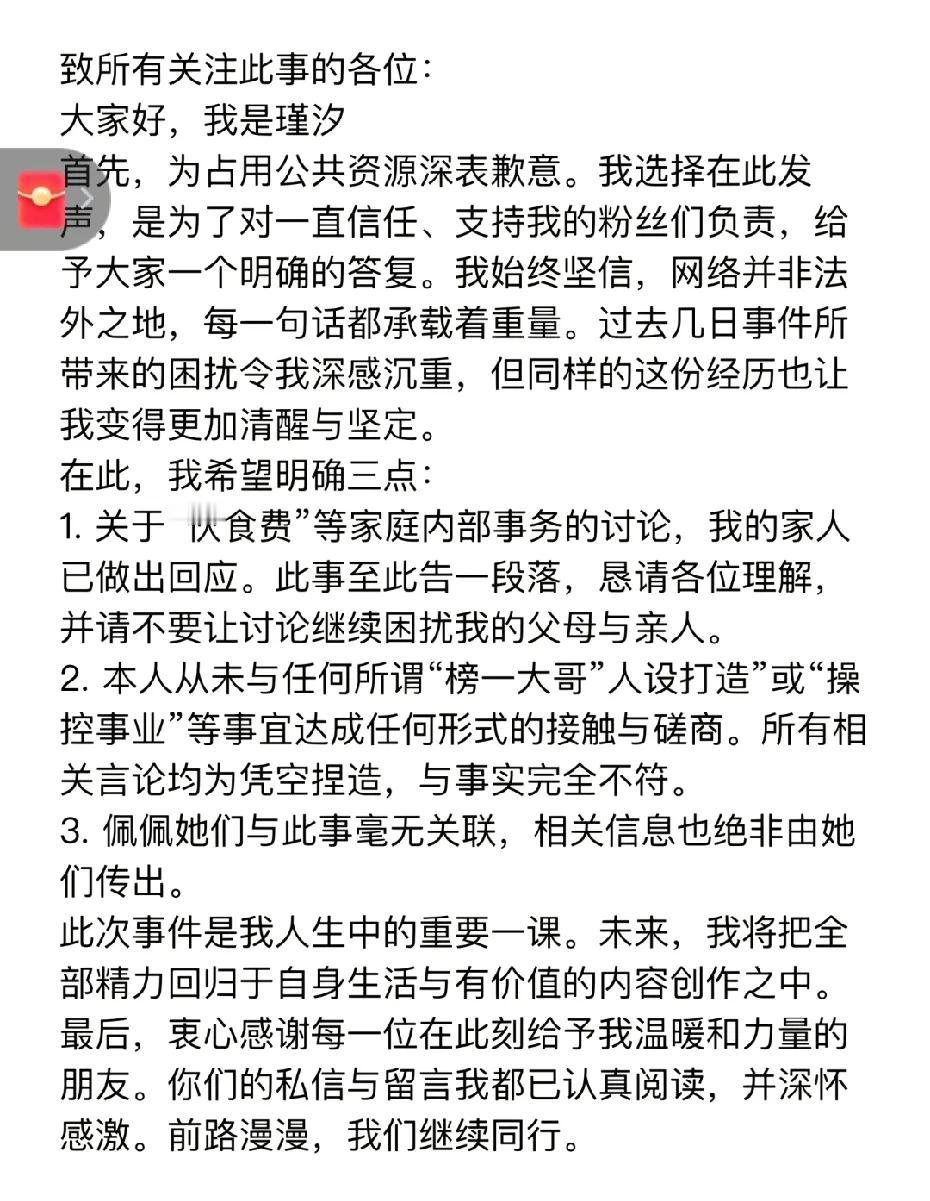瑾汐出来发声了,确认了确实要给温州父母交生活费。至于多少就按她两个姐姐回应的。 她没用立人设,生活费的事是真实的,不是制造话题,博流量。 她以后会专注自己,照顾好自己和儿子,然后自己拍好视频,偶尔直播带货。 网友给她的建议也是,一个人在贵州边带儿子,边开直播,能挣多少挣多少。温州只当亲戚来往就行了。