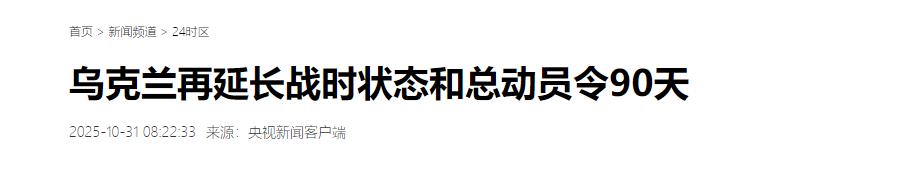 2025年10月31日,乌克兰总统泽连斯基签下的那道法令,与其说是战时动员的延续,不如说是一张被现实逼出来的“续命符”——将战时状态和总动员令一口气延长90天,直到2026年2月3日。 这已经不是乌克兰第一次延长相关法令了,从2022年2月战争爆发至今,这样的延长早已成了常态,可每一次落笔都比上一次更沉重。 明眼人都能看出来,这不是什么斗志昂扬的战略部署,而是一个国家深陷战争泥潭后,连转身都做不到的无奈挣扎。 谁不想早点结束战争?可前线的炮火从来不会给你喘息的机会,泽连斯基的这笔签字,首先就是被战场态势逼出来的。 2025年夏天以来,俄军根本没给乌军喘息的空间,不搞那种声势浩大的猛攻,就靠着蚕食式推进一点点压垮乌军防线。 苏梅、哈尔科夫州这些曾经的战略要地,如今被硬生生划成了“缓冲区”,说白了就是丢了控制权只能被动防守;波克罗夫斯克方向更凶险,被俄军撕开了15公里的口子,这条口子直接掐住了乌军的后方补给线,前线士兵的弹药、粮食都成了问题。 这就像两个人掰手腕,你本来就快撑不住了,对方还在一点点加力,你敢松手吗?一松手就会被彻底压垮。 防线要守,就得有人,可乌克兰的兵源早就快被榨干了,这才是最让泽连斯基头疼的事。开战到现在,乌克兰已经征召了105万人参军,这个数字放在以前相当于全国成年男性的近十分之一,可即便这样还是不够,未来三个月还得再凑16万人上前线。 更让人揪心的是兵力流失,今年前九个月,逃兵案就超过16万起,每个月净减兵力1到1.5万人。以前参军是保家卫国的光荣事,现在成了不得不去的“苦差事”,不是士兵们贪生怕死,是仗打得太久了,看不到头。 我听说哈尔科夫有个村子,一开始青壮年都去参军了,现在村里连60岁的老人都被征兵人员找上门,不是不想留,是真的没人了。 乌军早就不是当初那支有战斗力的队伍了,老兵越打越少,新兵没练几天就上战场,伤亡率居高不下,这样的军队守防线,只能靠人命去填。 前线靠人命填,后方靠什么?靠西方的援助,可这援助就像掺了水的酒,看着热闹实则靠不住。大家可能听说了,10月份西方又给了一波援助,美国追加了超10亿美元军援,瑞典说未来两年给80亿美元,看着挺多是吧? 可这些钱连填乌克兰的财政窟窿都不够。2024年乌克兰的国防开支占到了GDP的64%,是战前的10倍,当年预算支出1117亿美元,收入却只有660亿美元,赤字占GDP的20.4%;2025年情况也没好多少,公共债务规模涨到1980亿美元,占GDP的97%,说白了就是国家早就资不抵债了。 更要命的是援助不稳定,美国那边特朗普上台后一直喊“美国优先”,对援乌态度模棱两可;欧洲更别提,自己经济都不景气,各国对援乌的分歧越来越大,以前是共识,现在成了争议。乌克兰就像个重症病人,全靠输液维持生命,可输液管随时可能被拔,你说能不慌吗? 战争最苦的还是老百姓,一个国家的根基都快被抽空了。乌克兰原本有3400万人口,现在几百万人逃到了国外,几百万人在国内流离失所,好好的家不能回,只能挤在临时避难所里。 以前乌克兰靠种粮食出口过日子,现在农田被炮火毁了,农机被抢走了,就算种出粮食也运不出去。 劳动力也塌了,能打仗的上了前线,能跑的出了国,剩下的大多是老人和孩子,工厂开不了工,商店没货卖,冬天连暖气都供不上,这样的日子谁能熬得住?更让人看不到希望的是债务,现在已经欠了2300亿美元,就算明天战争结束,这笔债祖孙三代都还不完。 有人说泽连斯基是在“谋局”,可他谋的哪是局,是在“拖时间”。就连政治上都开始出现裂痕,10月份乌克兰议会全票通过议案,战争期间不举行任何选举,这意味着泽连斯基的总统任期能无限期延长。 表面说是特殊时期特殊办法,可老百姓不傻,超过一半的民众对他持负面态度。以前大家跟着他抗俄,是相信能赢能重建家园,现在看不到希望,民心就散了。 这90天的延长,不是走向胜利的冲刺,是“撑住不倒”的喘息。泽连斯基也不想这样,可他没有退路,停战就意味着丢领土,继续打就只能硬撑。 战争的惯性太可怕了,一旦卷进去就很难停下,就像一辆失控的卡车,明知前面是悬崖,却踩不住刹车。 90天后会怎么样?没人知道,可能还会再延长90天,也可能出现新的变数,但可以肯定的是,只要战争不停,乌克兰的泥潭就会越陷越深。这不是什么战略选择,是一个国家在绝境中最无奈的挣扎,让人看着心疼又无力。