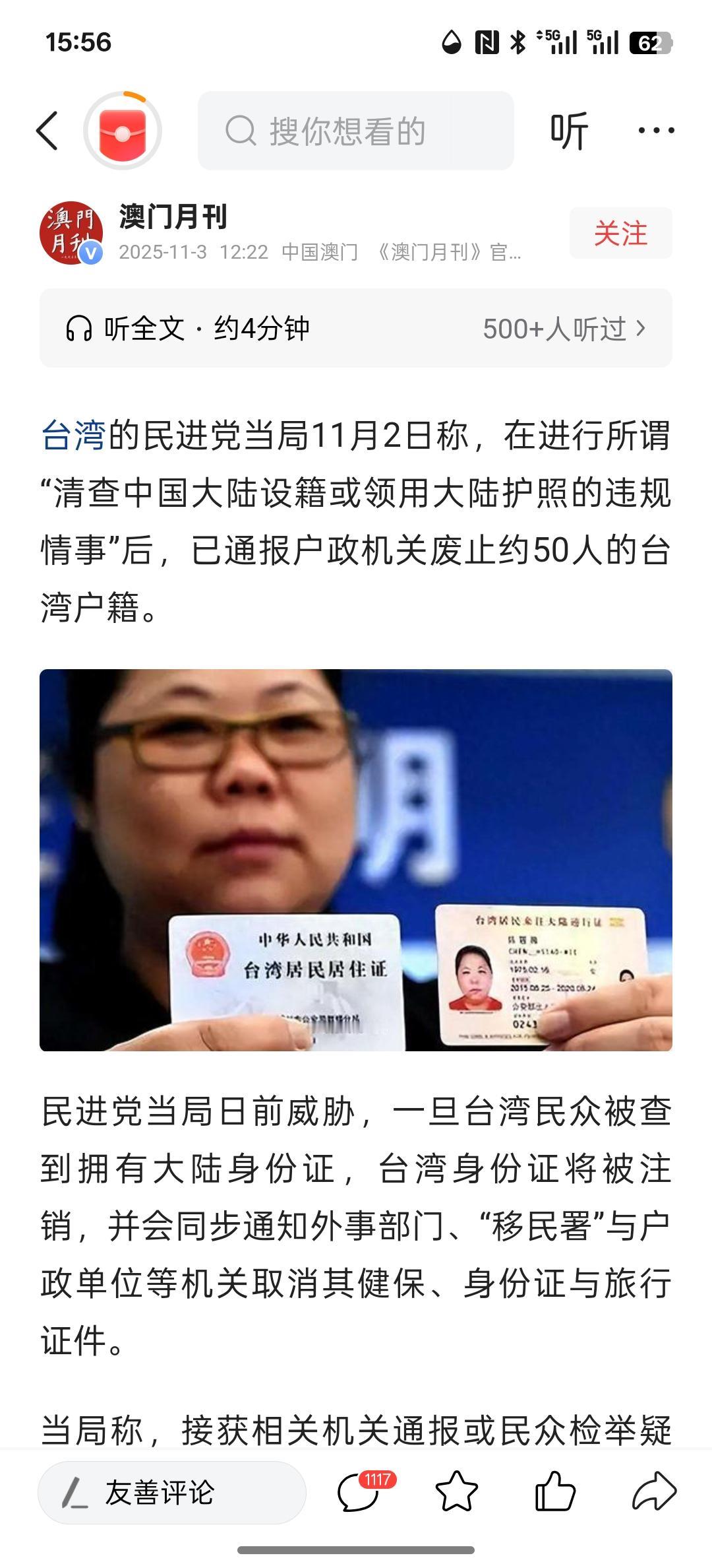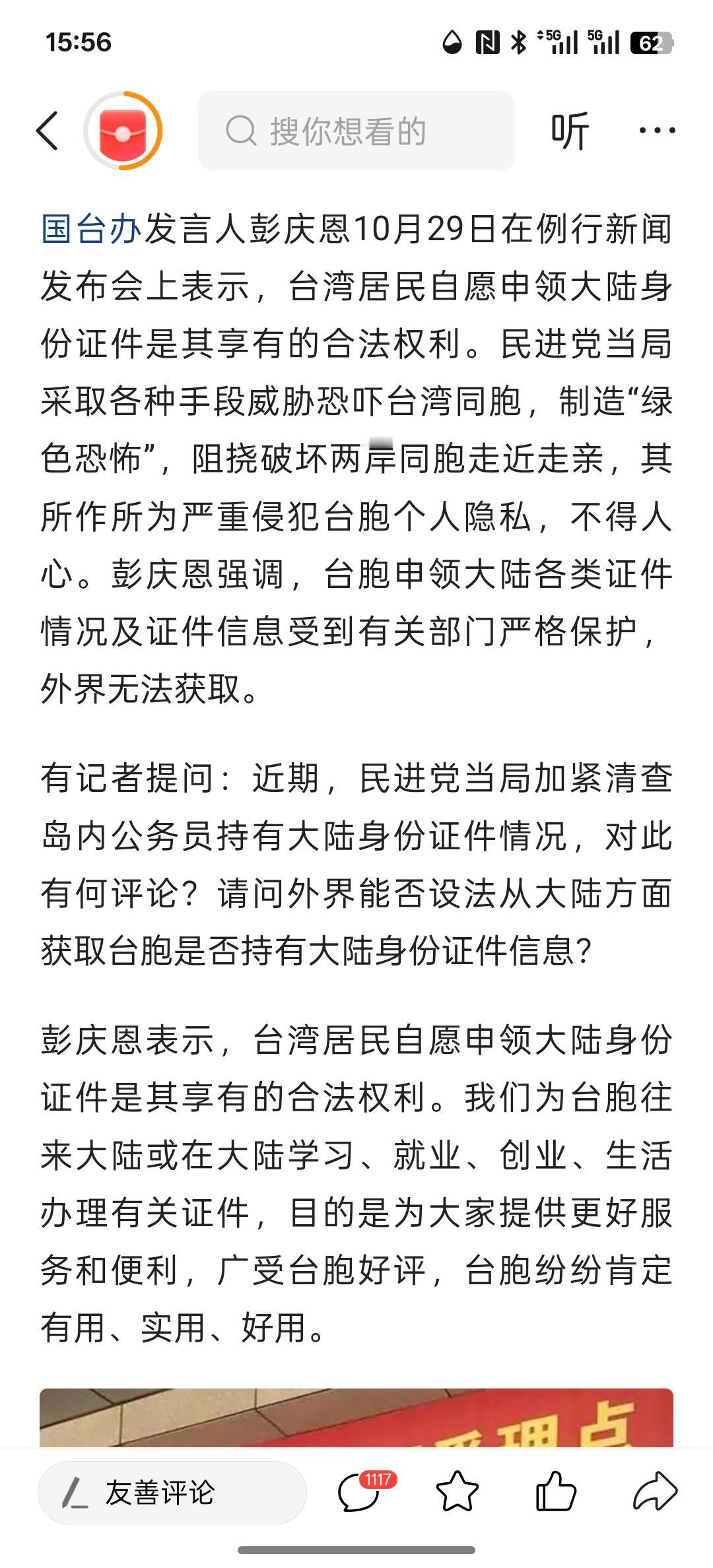 台湾同胞可以拥有大陆居民身份证,事关港澳台人员往来、过境免签口岸扩容等10项重磅政策发布。 现在台湾当局威胁台湾同胞,如果拥有大陆居民身份证将注销台湾民众的户籍,这简直就是威胁台湾民众!两岸本是一家亲,同为一个中国!台独分子为了自己的一己私利,非要给日本,美国当舔狗!要阻止台湾民众前往大陆!台独分子就怕自己的谎言被识破,一直阻挡台湾民众来到大陆! 台湾同胞实行过境免签政策,那未来台湾同胞可以大量来到大陆参观!可以戳破台湾当局的谎言