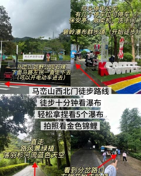 坪山❤️如果有足够的时间,记得去爬山⛰️ 去了一次马峦山西北门,轻松拿捏看5个瀑布,适当的时间去爬山,看看不一样的风景,可半路返程,也可攀登最高茶溪谷 ⭕️美食:马峦山西北门周边没有吃的,提前备吃 锦龙站附近有✅牛角龙豆花面✅京基大埔腌面✅候机楼后面牛肉火锅,春风十里✅玖云著周边饭店 ⭕️路线:(图二) 1️⃣导航马峦山西北门,路过落羽杉露营玩水,石牌下面马路左拐尽头就是「碧岭瀑布群步道」,直接徒步进山,直接装备齐全防蚊防晒,带水带吃的,注意🐍虫 2️⃣一开始平稳路道,徒步5分钟分岔路口右拐,过小桥走阶梯看到第一个大瀑布✅银河瀑,特别壮观!拍照也很美 ✅银河瀑→千尺瀑→紫烟瀑→飞流瀑→九天瀑,一共5个瀑布,每一个瀑布都有不一样的美景,最美的第一个大瀑布,锦鲤潭最漂亮的锦鲤成群碧绿湖水 ✅一路有多个小亭可休息避暑,上台阶爬山会比较吃力大约⏰1.5H爬完,返程下山很轻松大约⏰半小时下山 🎫门票:免费🆓免预约 ⏰开放时间:早6-晚11点 📍导航:马峦山郊野公园西北门 🅿️停车:西北门有550个停车场 (春节国庆提前预约停车i深圳) 🚇公共交通:锦龙站下车dd到 ⚠️注意安全 📍马峦山北门也值得打卡爬山,马路平稳好拿捏,适合中小学生,兄弟姐妹户外运动 本地人都爱吃的美食 爬山好去处 户外徒步爬山 工作日爬山徒步 爬山爱好者 不要让工作耽误了爬山 爬山 每周一山 锦鲤