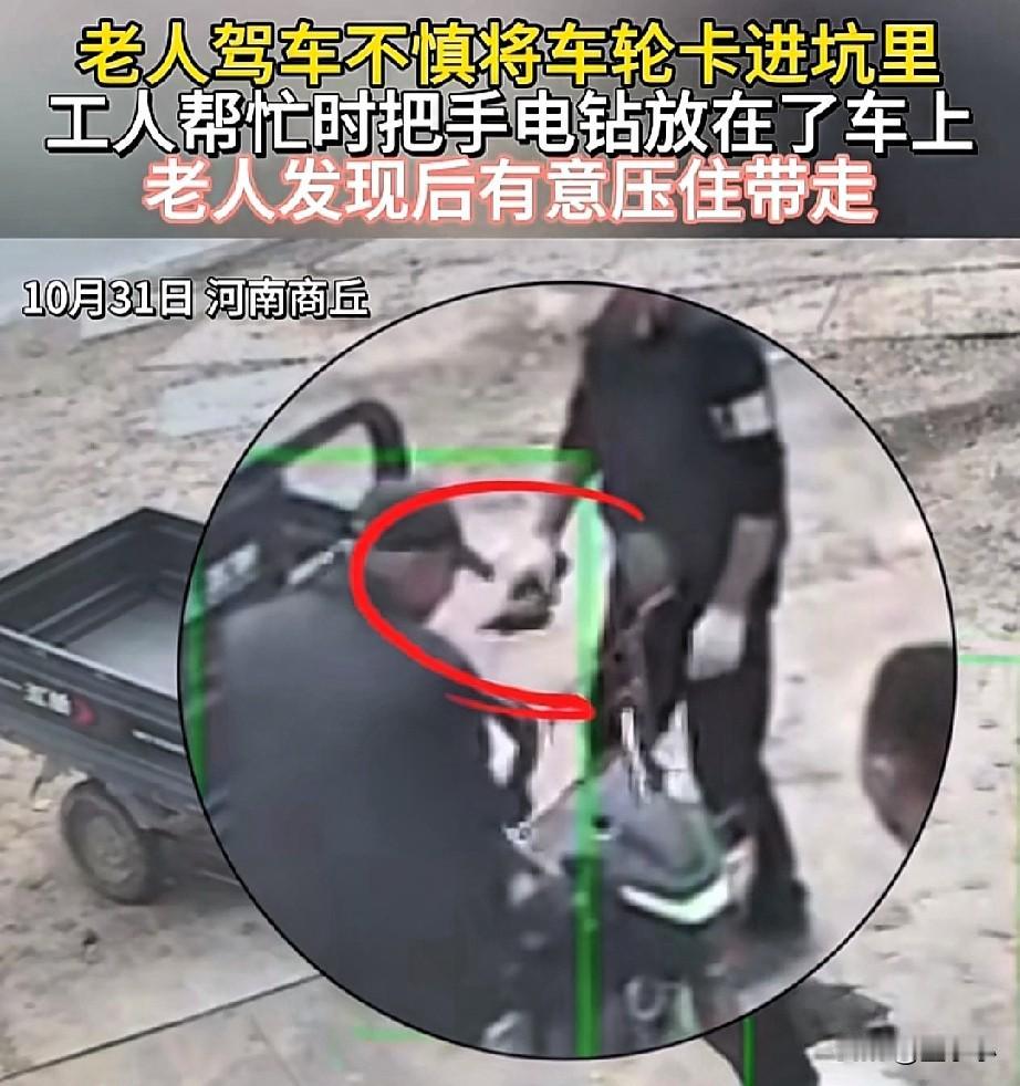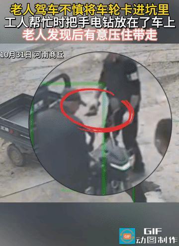 现实版的农夫与蛇! 河南一位大爷骑着电动三轮车的前轮子卡进坑里面了,就找人后过来帮忙,正好附近有工人就过来了,一位工人的手里还拿着手电筒放在三轮车座上。 事后,大爷竟然把工人的手电筒坐在屁股下面直接带走了,临走之前他还看了两位工人,发现他们似乎也忘记了手电筒,就没有提醒直接溜了。 真不知道这位老人怎么想的,人家好心好意过来帮忙,反而你还恩将仇报,这样的人必须曝光,以后在找人帮忙,必须要远离才行。